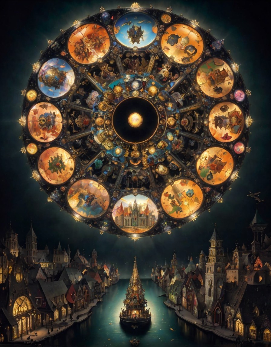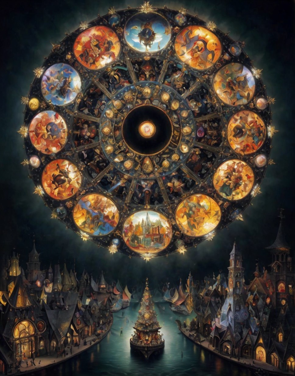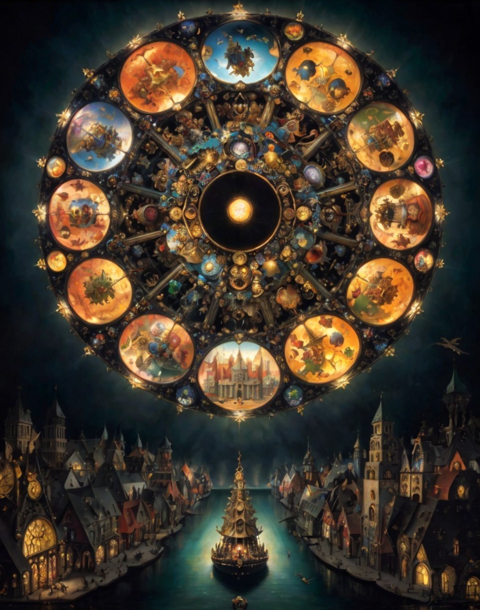 Prompt: 151515: [abstract artwork depicting a chaotic scene of societal discord and power dynamics, inspired by Dali and Hieronymus Bosch, intricate details in surreal elements and symbolic imagery, vibrant colors contrasting with dark undertones; highly detailed, The scene is captured with a Nikon Z9 camera using an 85mm F1.2 lens, resulting in a smooth and realistic HDR effect, uncanny and surreal atmosphere in 8k resolution]