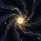 A mesmerizing swirl of vibrant golden and blue streams radiates around a central glossy sphere, creating a dynamic sense of movement and depth in a cosmic, otherworldly setting.