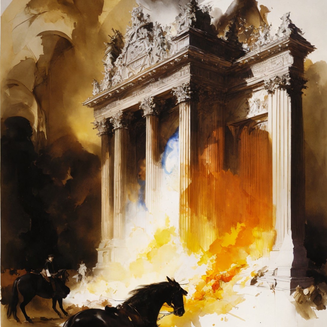 Prompt: "generating images with a so-called intelligent machine is like discussing philosophy with a moron, something is happening but we don't control much: the proof! abstaction in the real time , pencil sketch, gouache painting on parchment, by Salvator Dali, Thomas Moran, Jean-Paul Riopelle"