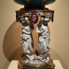 A surreal and dark fantasy scene featuring a towering, grotesque figure sitting atop a floating pedestal. The figure is partially skeletal and draped in flowing, crimson tendrils that cascade downwards, merging with faceless, human-like forms entwined around the base. The background is stark and minimalistic, dominated by a large, ominous moon casting a haunting glow. Intricate, calligraphic symbols adorn the scene, enhancing the eerie atmosphere. Emphasize the juxtaposition of life and death, and the melding of organic and abstract shapes in a nightmarish yet captivating composition.