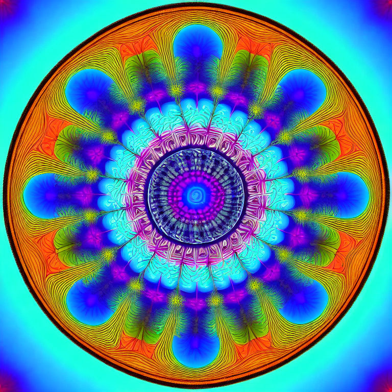 Colorful Circular Fractal Design with Blue, Green, Orange, and Purple Hues