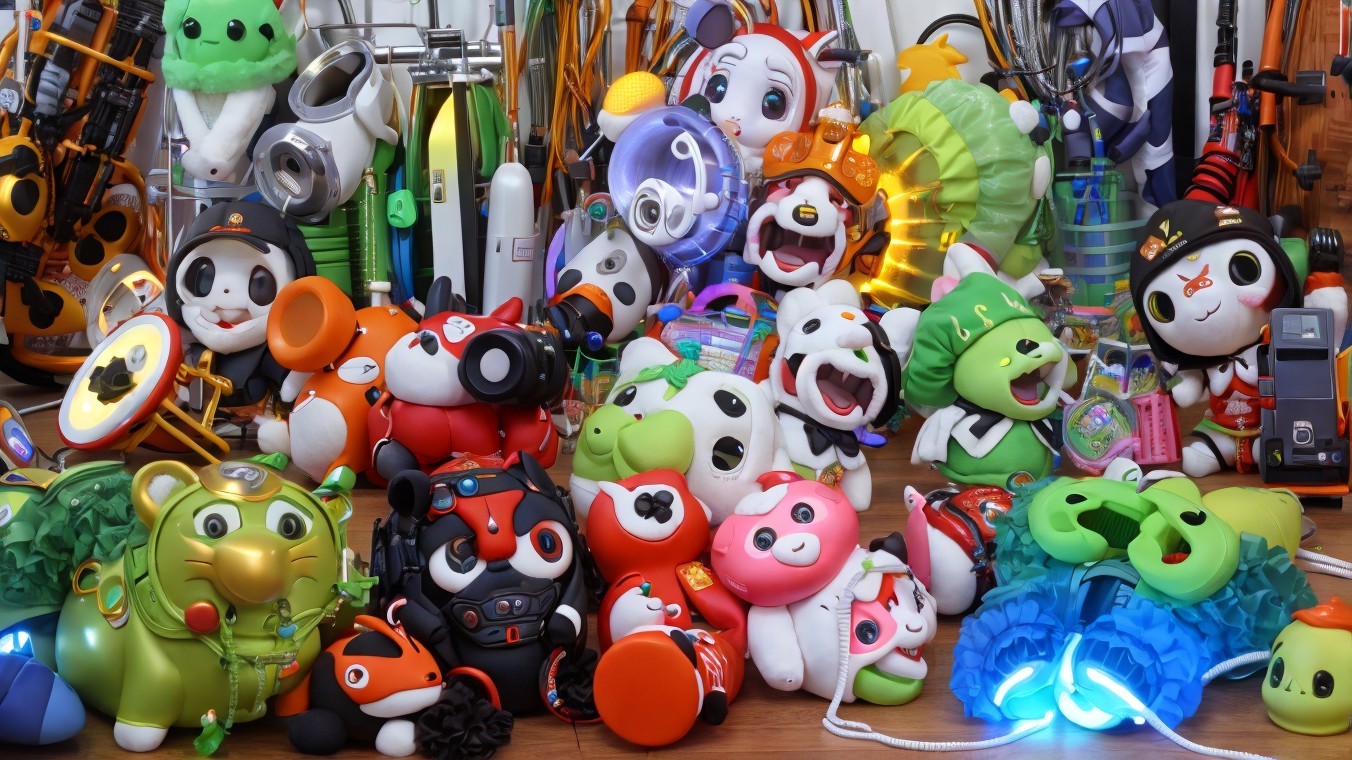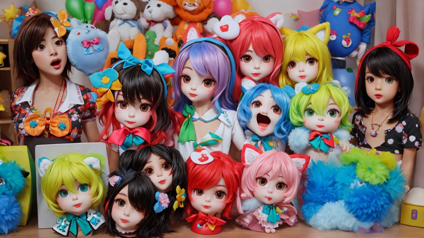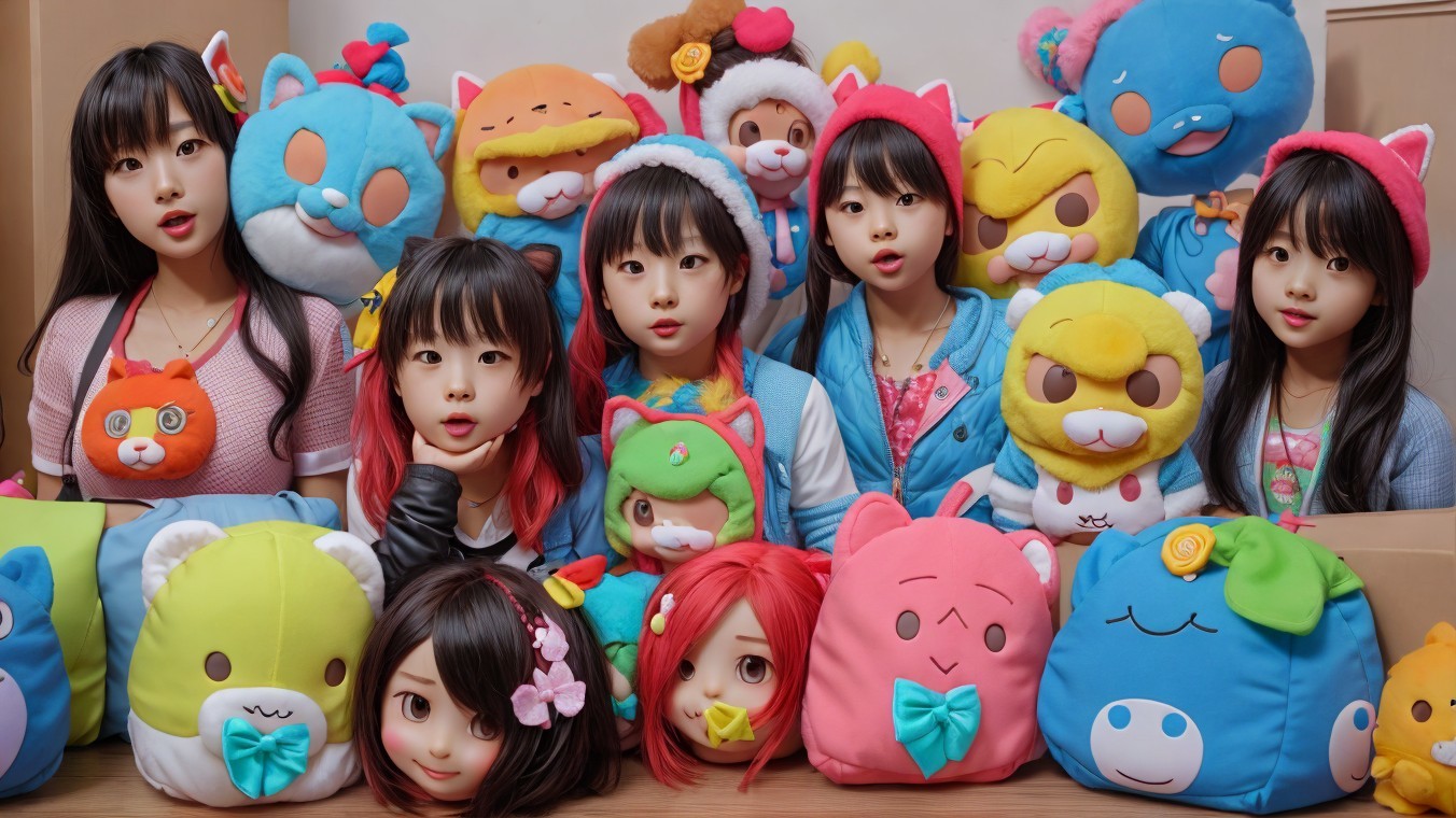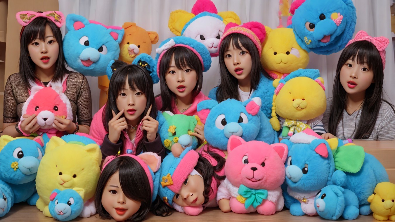 Four Women Posing with Cat Ears, Colorful Balloons, and Furry Bags