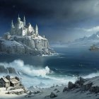 A serene landscape featuring a meandering river surrounded by misty trees. Autumn leaves add a splash of color, while dark clouds hint at an impending storm, creating a dramatic atmosphere.