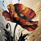 A vibrant, oversized red poppy blooms against a soft, radiant background of warm hues. Its textured petals and contrasting black center create a striking, dynamic visual.