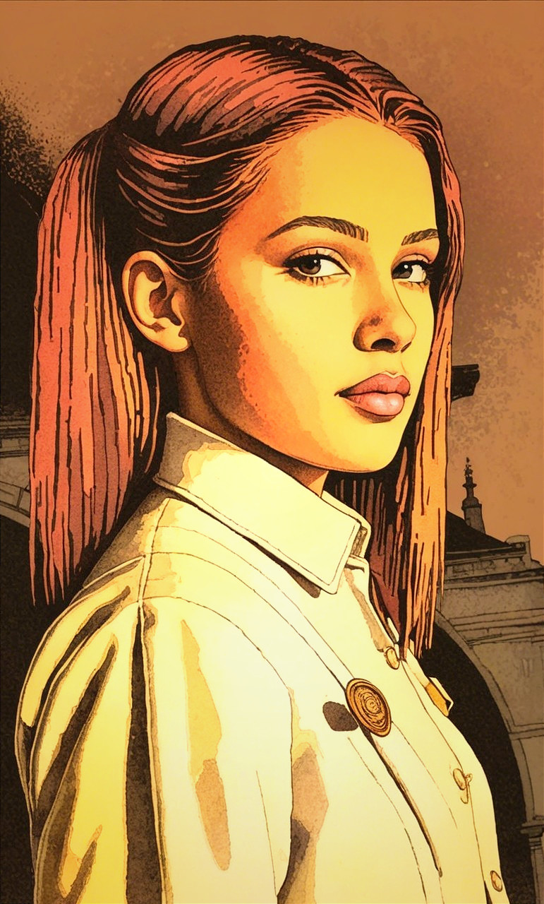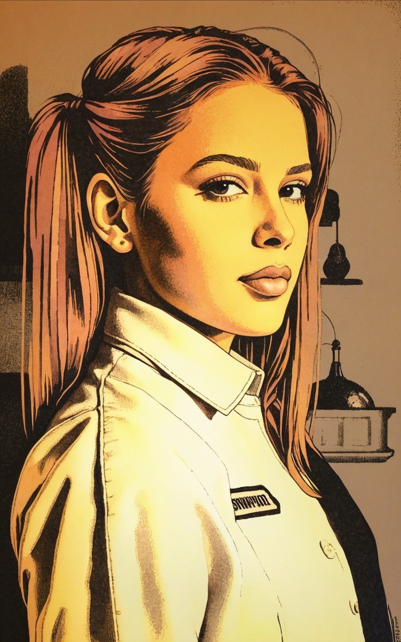 + Prompt:Headshot. foampunk 1.3, simpistic coloring: Hues by Overton Loyd, contouring outlines for sgraffitto reminiscence. Stencil-style.The stylized figure embodies casual confidence and a carefree attitude, set against a backdrop of sunlight casting dynamic shadows in a minimalistic setting with natural and rustic details in lineage. handsome, gorgerous, beautiful dynamic lighting is high-contrast, with bright highlights and raytraced shadows, capturing a joyful moment. The artwork is a mix of media, incorporating watercolor washes, airbrush techniques, tonalism, orphism, pencil and ink, and crayon art. The textures emulate thinned watercolor effects on aged paper and linen canvas weaves, enhancing the organic feel of the piece. Soft, natural daylight-like lighting illuminates the illustration, emphasizing the hand-painted quality and intricate artwork with a Scandinavian twist, showcasing a fusion of delicate pastel greens, warm ivories, and muted beige tones. The color palette, curated by Overton Loyd, blends harmoniously to create a serene atmosphere. The artwork features a figure exuding leisurely relaxed beauty, seated on a windowsill with one leg casually extended. Their voluminous, tousled hairstyle creates a flowing hair illusion, enhanced by subsurface scattering effects. The line-art cascades warm tones, offering a slightly simplistic yet alluring aesthetic. The style blends dynamic elements with minimalistic line art, featuring elongated linework, bold lineage, and black contouring outlines to create a visually striking composition.