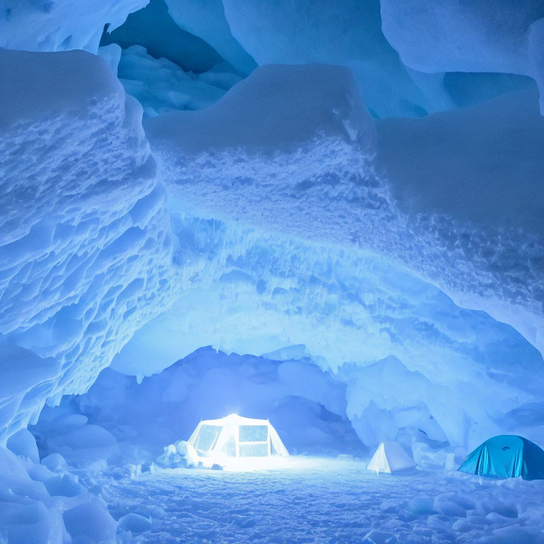 Ice cave and large icicles