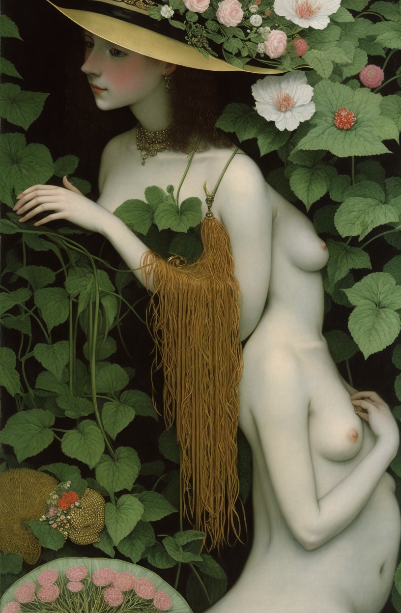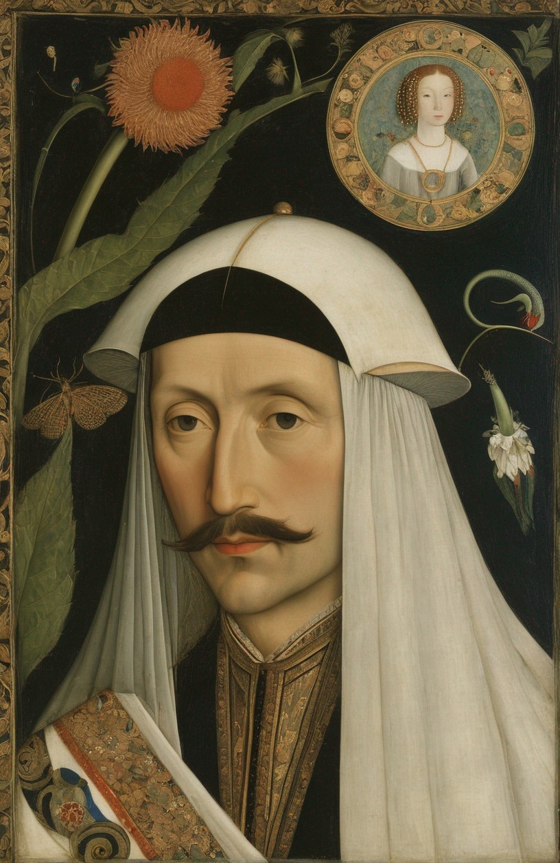 A regal woman with a golden crown, adorned with emeralds and pearls, and intricate green attire, exudes elegance and nobility against a halo backdrop.