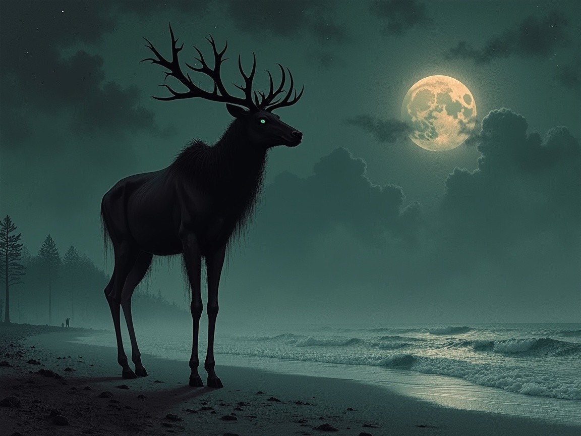 Art by Aubrey Beardsley, Ominous tall gangly long-limbed black humanoid figure with obsidian antlers on a shadowy misty beach, black clouds, foggy moonlight, stars, dark waves, reflections, dark atmosphere, black tones" highly detailed elegant intricate very attractive beautiful dynamic lighting high definition very cute Zdzisław Beksiński Leonid Afremov Yoshitaka Amano Ohara Koson Ivan Rabuzin Gian Lorenzo Bernini Enoch Bolles Jean-Baptist Monge highly detailed highly detailed highly detailed beautiful elegant intricate very attractive highly detailed highly detailed highly detailed highly detailed beautiful intricate highly detailed "extra limbs, bad hands, bad face, poorly rendered weapon, antlers cut off, antlers out of frame, blurry face, distorted face ugly, Flat, dull, ugly, tiling, poorly drawn hands, poorly drawn feet, poorly drawn face, out of frame, extra limbs, disfigured, deformed, body out of frame, blurry, bad anatomy, blurred, watermark, grainy, signature, cut off, draft"The Man With No Dreams