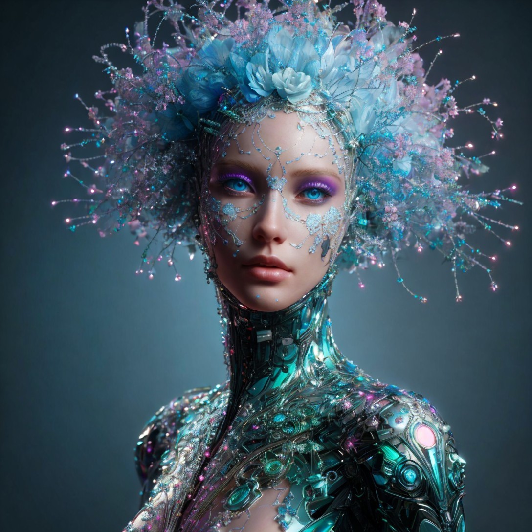 + Prompt:PHOTOREALISTIC POETICAL albino android Angels. Intricate art by style of J. B. Monge (pink), Roger Dean (blue), bluish microcircuits under the skin, super detailed, masterpiece, hyper-photographic, superb quality, cinematic creation, ultra HQ, 8K, 3D, high resolution, high definition, ultra detailed, perfect anatomy, polished and clean picture, no parts out of frame