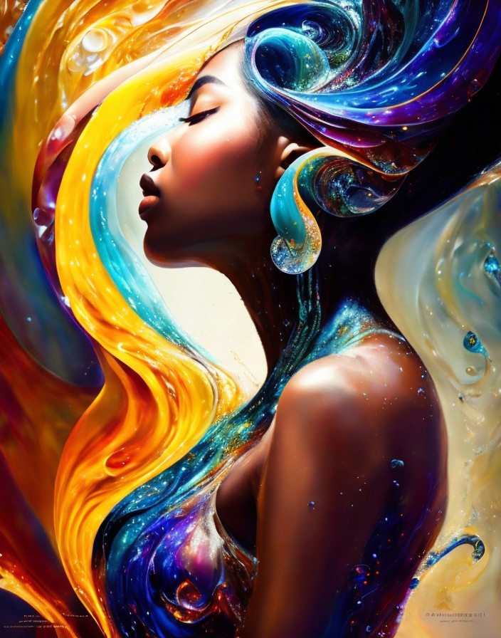 Prompt: [Half body portrait] A creature of harmonious fluidity emerged, its essence a symphony of liquid melodies. It moved with grace, its form constantly shifting and undulating like a mesmerizing dance. The creature seemed to embody the very essence of harmony, its every movement a testament to the beauty of fluidity. It existed in a realm where boundaries between solid and liquid were blurred, where the concept of form was but a fleeting notion.