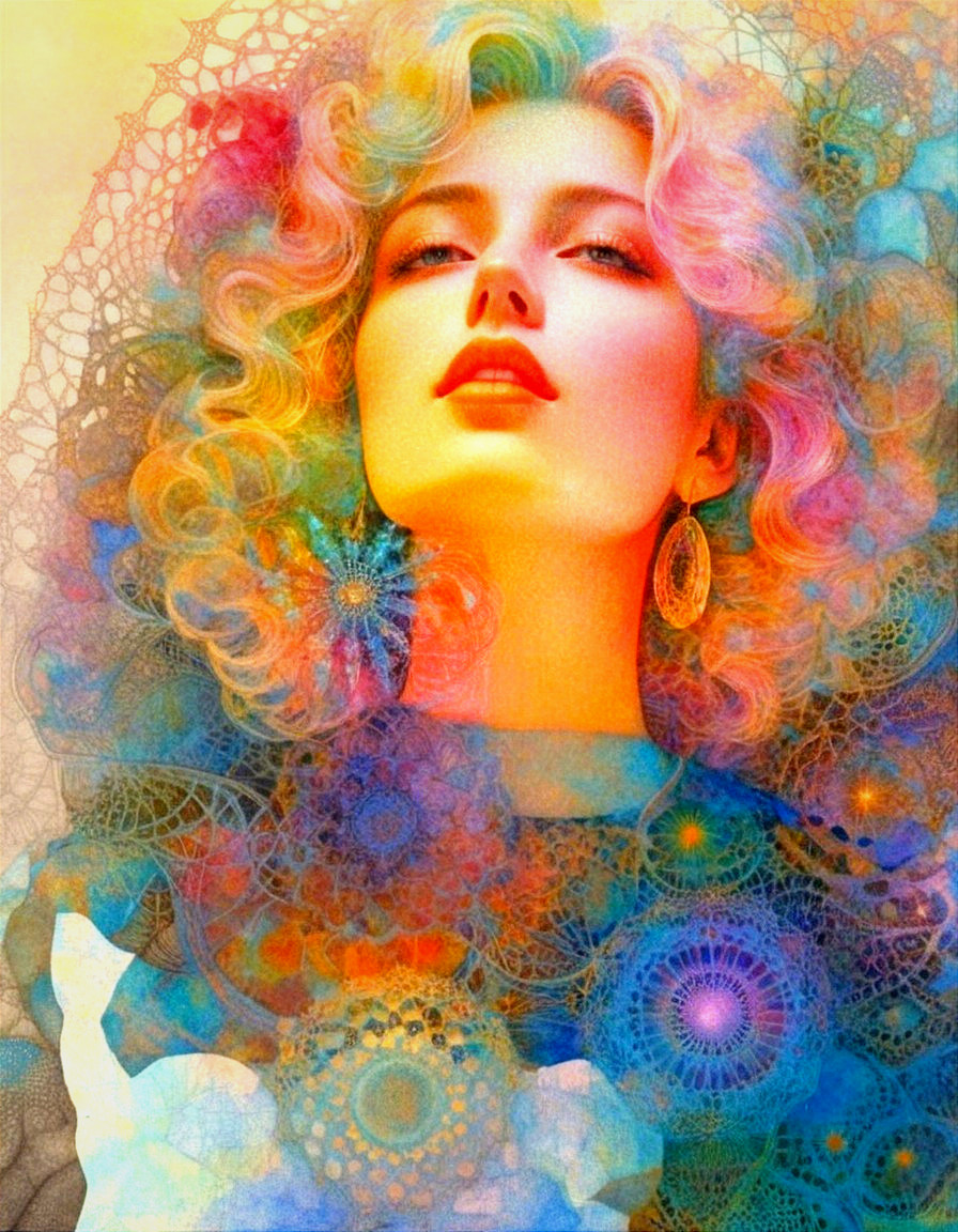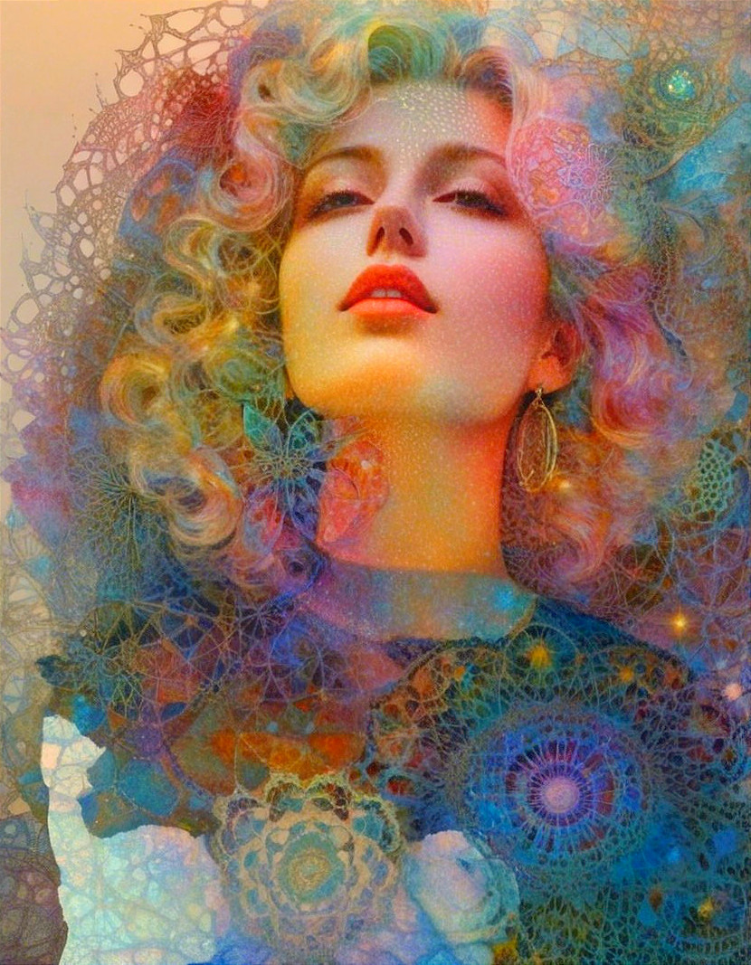 Intricate lace filigrees, dreamy woman portrait, wet black and blue hues, watercolor and ink medium, detailed neuronal network cymatics, iridescent overlay, line art elements, Vassily Kandinsky's perfect fractal style, lighting by Ed Paschke, wavery texture patchwork, pellucid details, juminocore elements, 128k rendering, cel-shaded drawing style, novelty architecture, dof,Jackson Pollock's abstract expressionism, Alphonse Mucha's decorative motifs, Jeremy Mann's atmospheric cityscape influence, high-quality resolution, 4K clarity.American Gothic merged with comic book art. Maximalism, rule of thirds. Plasticity 1.3, ambient occlusion 1.3, parallax occlusion 1.3, raytraced shadows 1.3, dynamic lighting 1.3, metallic-honey accents, wavery dappled lighting, zentangle, rim lighting, otherworldly ambiance, mosaic with hatching influences, color hues by Overton Loyd and Ho baron, subtle influence from Aliza Razell, luminism approach, watercolor overspray technique, extreme variety of colors, slightly sculpted, flowing hair illusion, ethereal atmosphere, layers of fabric that blend with turbulent flares, liminal, luminism, plasticity 1.6, dynamic lighting effects, ambient occlusion, hues by Ho baron,