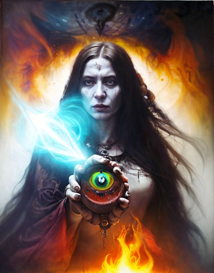 Mystical Figure Channeling Energy with Glowing Orb