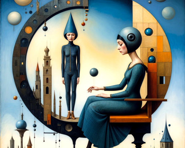 A woman stands amid colorful smoke, blending shades of orange, green, and white. Her serene expression contrasts with the vibrant chaos surrounding her, creating an ethereal, dreamlike atmosphere.
