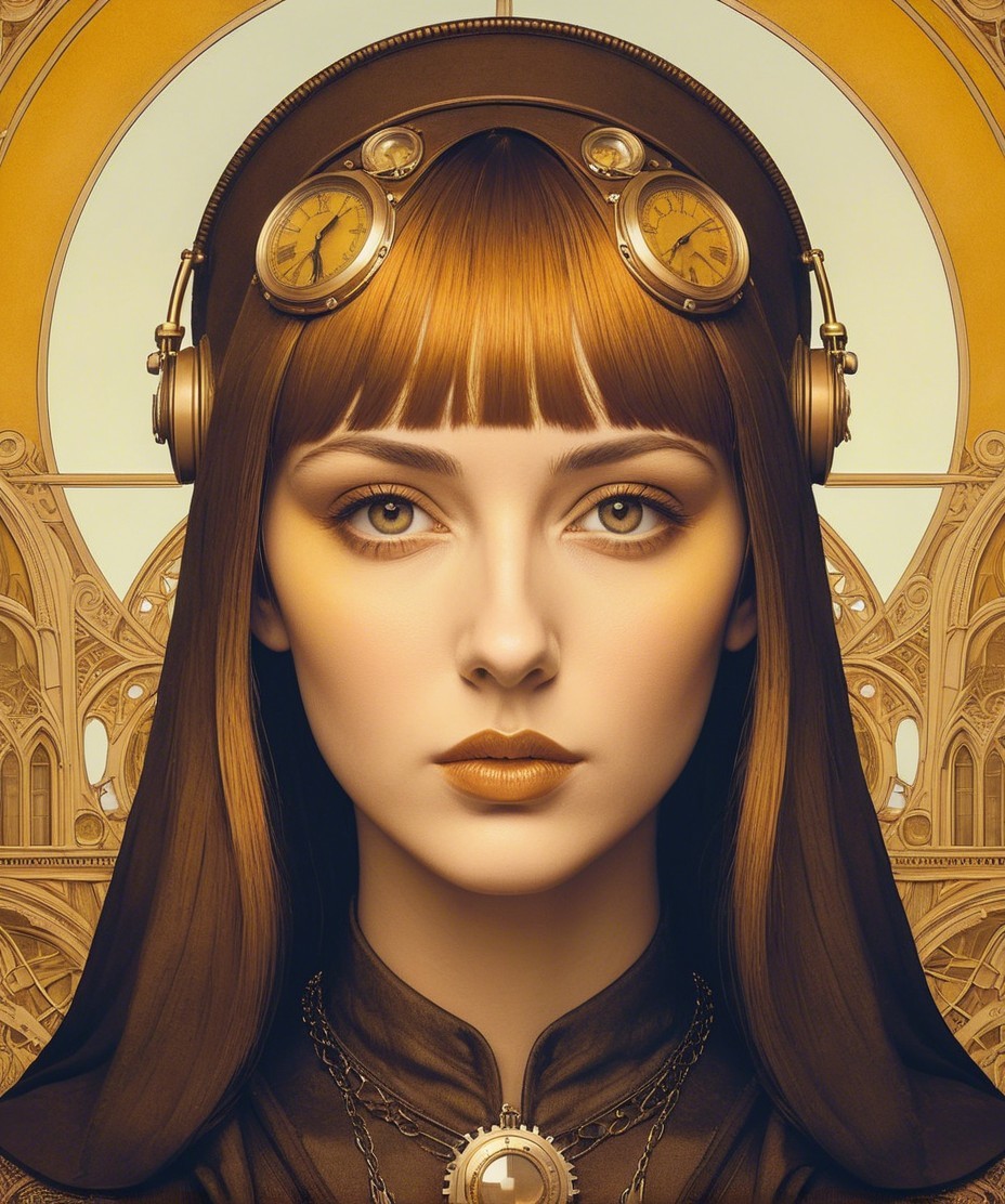 dynamic lighting, art nouveau, (steampunk (triadic color scheme yellow, ochre, burgundy) 6:11), inkpunk, background in retrofuturistic setting by Edward Hopper, perfect handsface, ornamental details in contrast colors, hyper detailed. Watercolor details, action pose, (dark beige background with tints of Stanl ee, vivid illumination, intricate surrounding), tints of 1990s advertising art) 7:11), detailed plasticity, dreamscape, cinematic wash, grain, Schreger lines, luminous plasticity, 3d effects, ballpen strokes, spiritual essence ,echaustic flares, anisotropic filtering, shadow mapping 1.3, volumetric lighting, daguerreotype photography style on old paper, alcoholic ink, auracore, raytracedshadows1.8, , dreamscape, mystical symbolism, magical realism, erotic essence, overall composition by Georgia o'keffee and William Bradley,