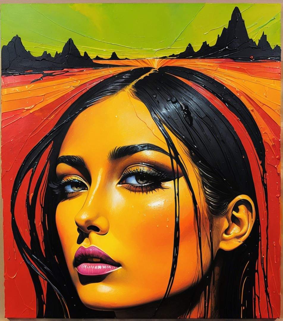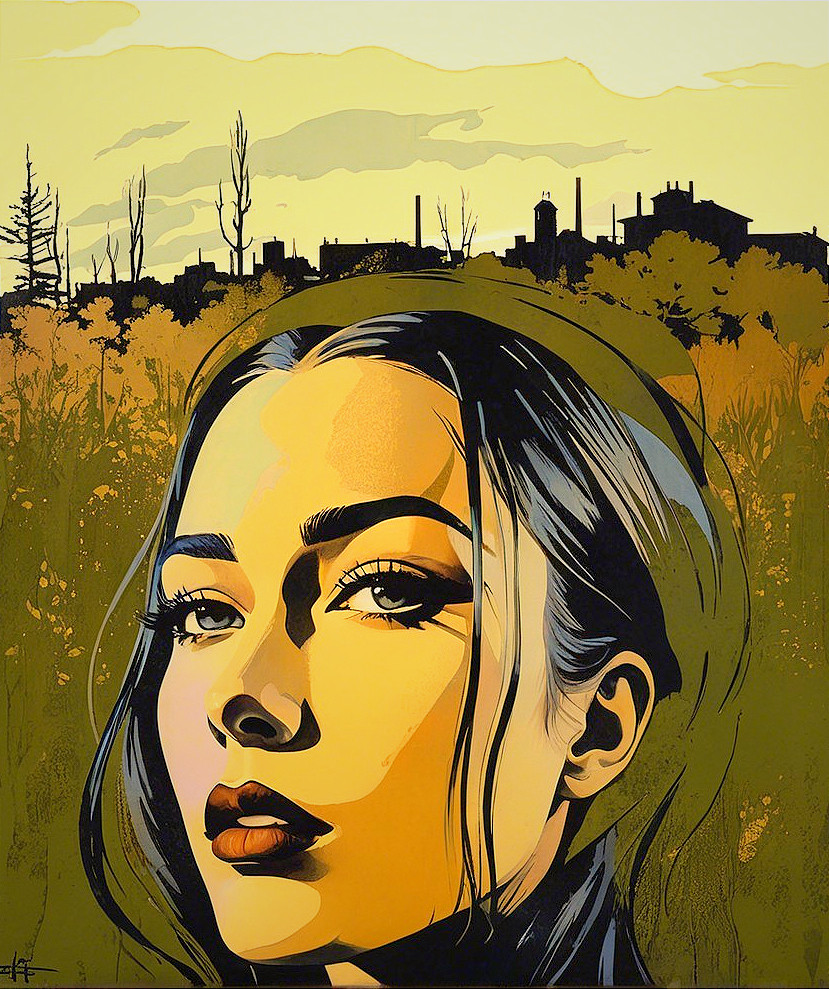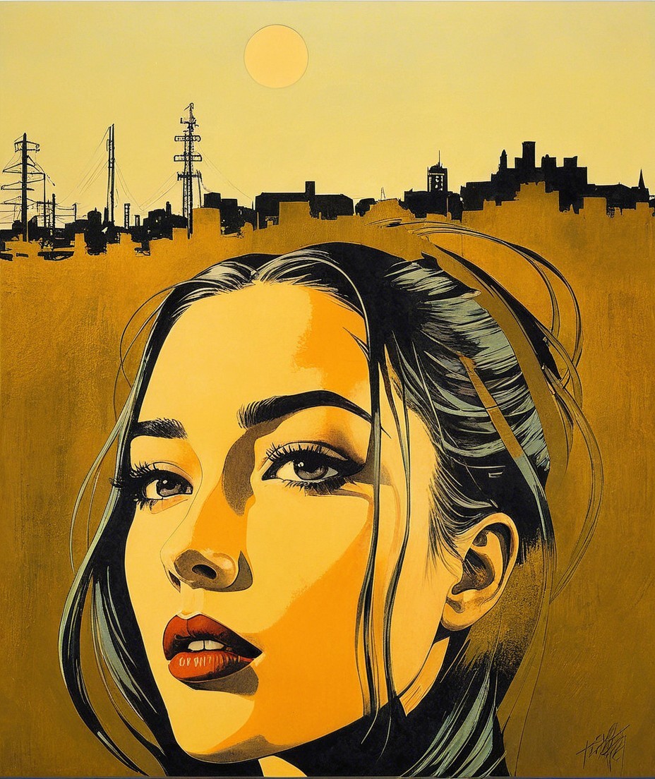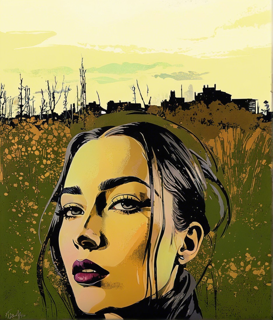 Stylized woodblock print, simplistuc headshot by harrison fisher, tesselated, sculpted, rim lighting, Stylized tesselated Portraiture with flowing hair illusion, surreal, animated cartoon style heroine in style of Georgia O'Keeffe, juvenile beauty, textured skin, sculpted, urban, foampunk, blotting aquatint, intricate hues, american gothic 1.3, rusticcore 1.5, tetradic color scheme auburn red mauve pistachio-green, architectural details in background, divisionism, urban chic, stylization 1.2, raytraced shadows 1.8, warm green and brown hues in logarithmic distance, warm colors, american gothic 1.7, rim dynamic lighting, brightness 1.8, raytraced shadows, 3 point lighting, (botanical print (triadic color scheme beige red yellow) 7:11), stippled, perfect handsface, urban details, quaint, dappled illumination, tesselated hairstyle), tints of abstract art, 7:11), luminism, 3d effects, anisotropic filtering, warm coloring, 1970s art, shadow mapping 1.3, 3 layers of dof, layered assemblage, minimalistic, symmetrical, abstract style, fnord , zebadri, cel-shaded, Psychosomatic surrealism, multi-layered eyes, tints of Paul kidby, 3 point lighting, squiggly lineage, devilish eyes 1.7, aquarelle, color scheme of green, gradient inking in hues, plasticity 1.6, complexion 1.4, shadow mapping 1.7, retrofuturistic, luminous, uhd,hdr, octane render illustration 1.5, UnityRenderTexture, multi-textured, ethereal, precise Gelsculpt64K, Novelty architecture, luminosity 1.3, brightness1.9, colored ink, plasticity 1.6, blotting texture with spray paint details, The background has a stylized comic book illustration style, abstract, (3d effects, HDR, charcoal Drawing, squiggly zentangle lines and filigrane lineage, warm colors, shadowy lineage illustration, beautiful composition 1.5, dramatic greenish lighting, alcoholic ink details, 3d rendering 64K quality, uhd, hdr, VFX-inspired octane render illustration by Walter Hood Fitch and William Bradley,
