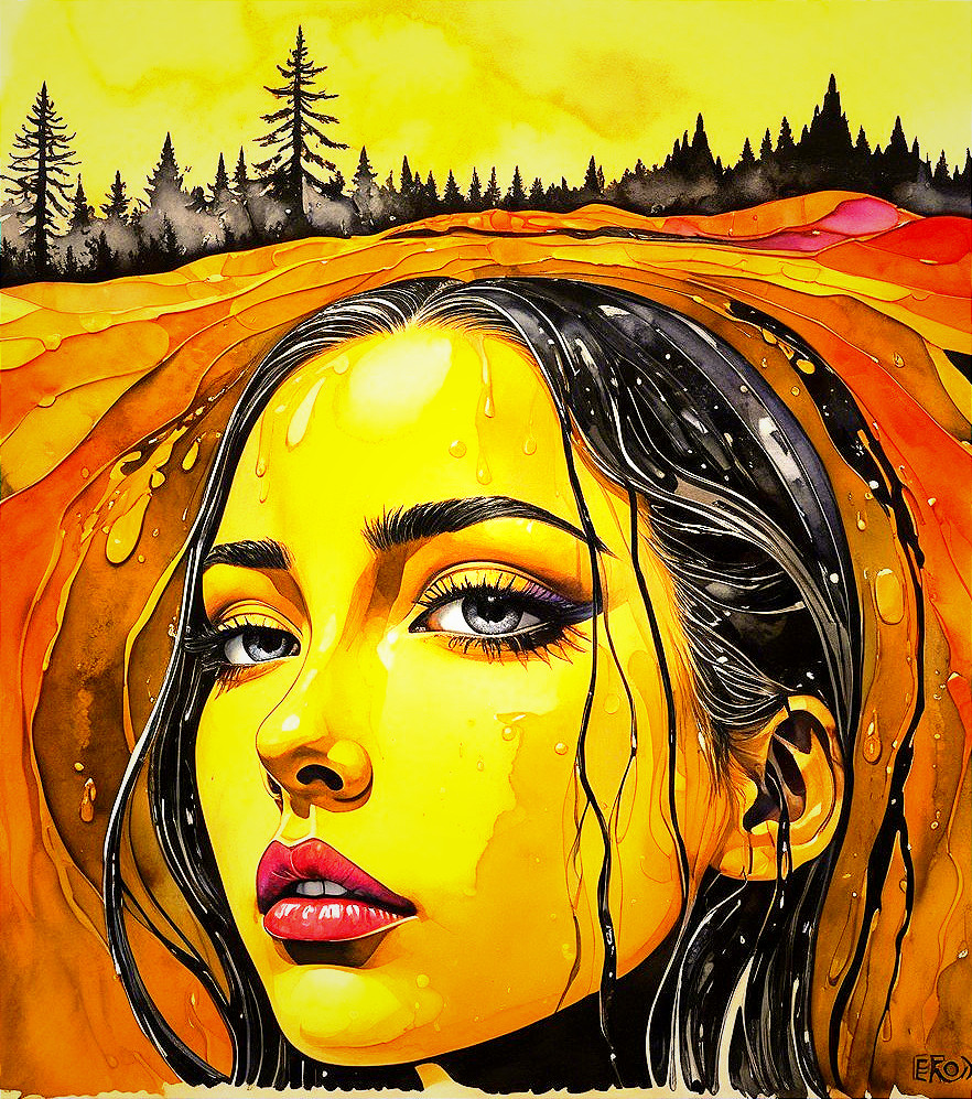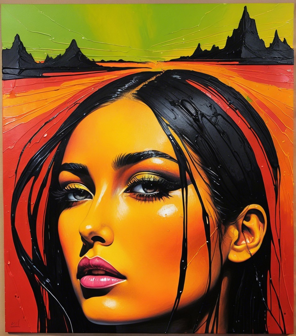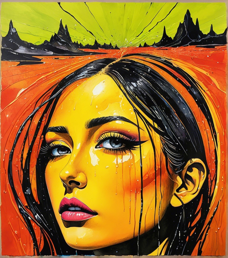 Stylized woodblock print, simplistuc headshot by harrison fisher, tesselated, sculpted, rim lighting, Stylized tesselated Portraiture with flowing hair illusion, surreal, animated cartoon style heroine in style of Georgia O'Keeffe, juvenile beauty, textured skin, sculpted, urban, foampunk, blotting aquatint, intricate hues, american gothic 1.3, rusticcore 1.5, tetradic color scheme auburn red mauve pistachio-green, architectural details in background, divisionism, urban chic, stylization 1.2, raytraced shadows 1.8, warm green and brown hues in logarithmic distance, warm colors, american gothic 1.7, rim dynamic lighting, brightness 1.8, raytraced shadows, 3 point lighting, (botanical print (triadic color scheme beige red yellow) 7:11), stippled, perfect handsface, urban details, quaint, dappled illumination, tesselated hairstyle), tints of abstract art, 7:11), luminism, 3d effects, anisotropic filtering, warm coloring, 1970s art, shadow mapping 1.3, 3 layers of dof, layered assemblage, minimalistic, symmetrical, abstract style, fnord , zebadri, cel-shaded, Psychosomatic surrealism, multi-layered eyes, tints of Paul kidby, 3 point lighting, squiggly lineage, devilish eyes 1.7, aquarelle, color scheme of green, gradient inking in hues, plasticity 1.6, complexion 1.4, shadow mapping 1.7, retrofuturistic, luminous, uhd,hdr, octane render illustration 1.5, UnityRenderTexture, multi-textured, ethereal, precise Gelsculpt64K, Novelty architecture, luminosity 1.3, brightness1.9, colored ink, plasticity 1.6, blotting texture with spray paint details, The background has a stylized comic book illustration style, abstract, (3d effects, HDR, charcoal Drawing, squiggly zentangle lines and filigrane lineage, warm colors, shadowy lineage illustration, beautiful composition 1.5, dramatic greenish lighting, alcoholic ink details, 3d rendering 64K quality, uhd, hdr, VFX-inspired octane render illustration by Walter Hood Fitch and William Bradley,