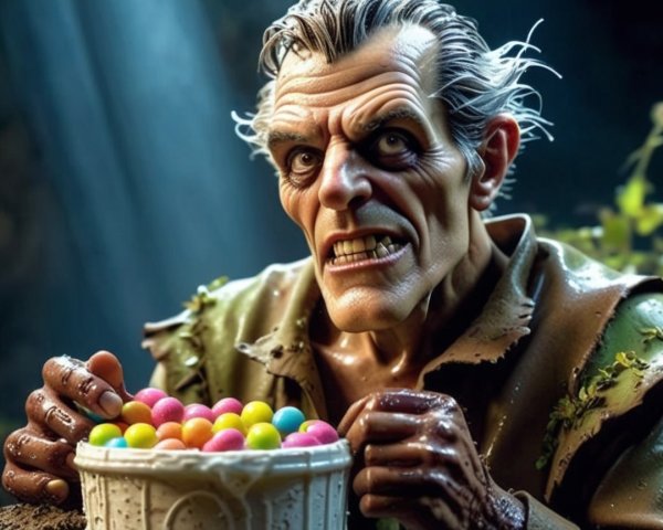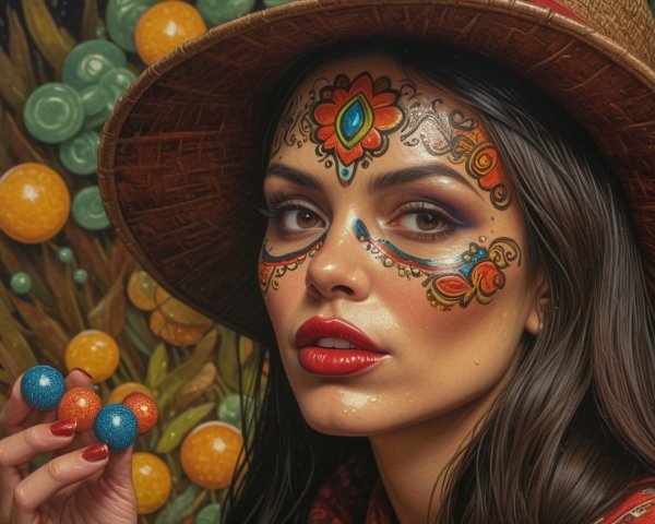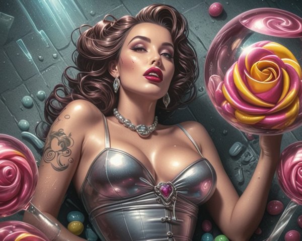 A vibrant yellow vintage convertible car is set against a backdrop of colorful roses and leaves. The design blends nostalgia with bold floral elements, creating a striking and artistic composition.