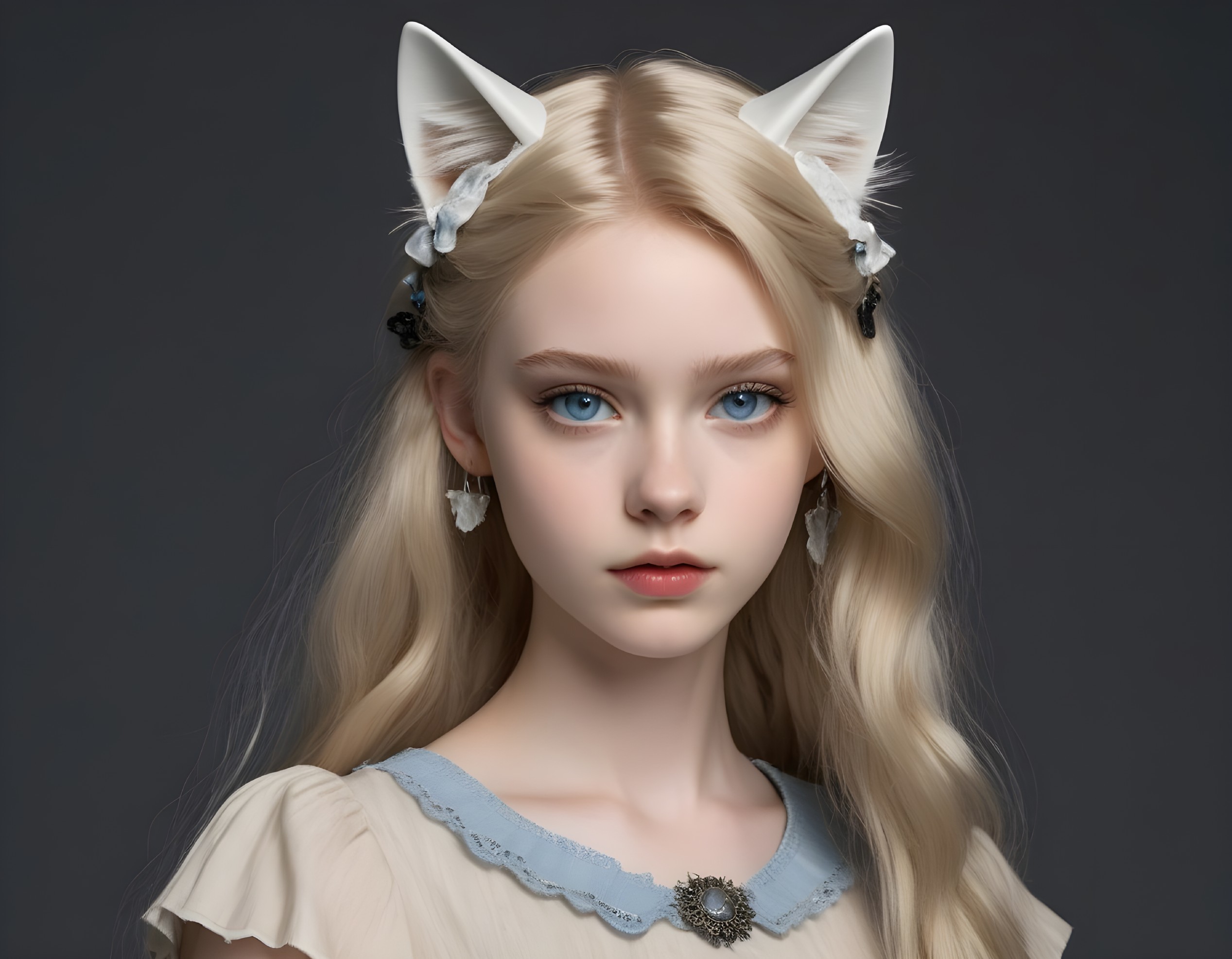 A gothic-inspired illustration featuring a young girl with icy blue eyes,