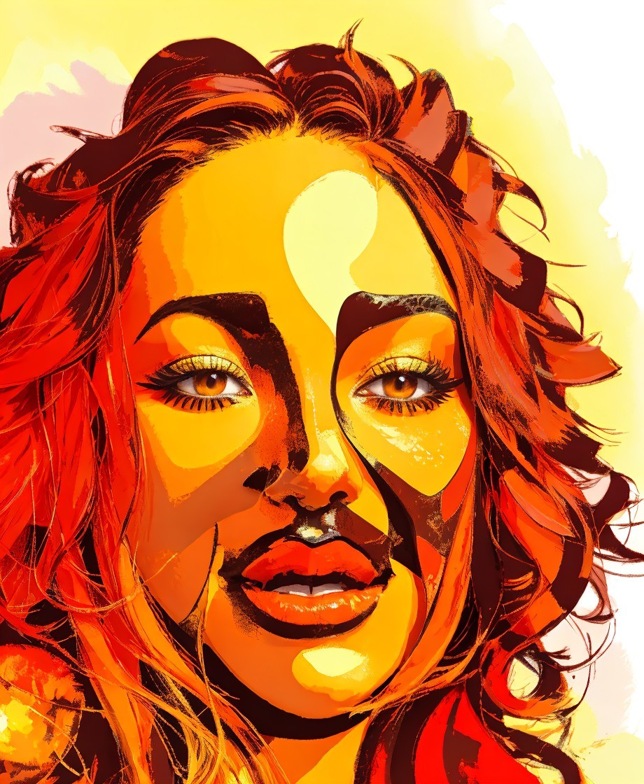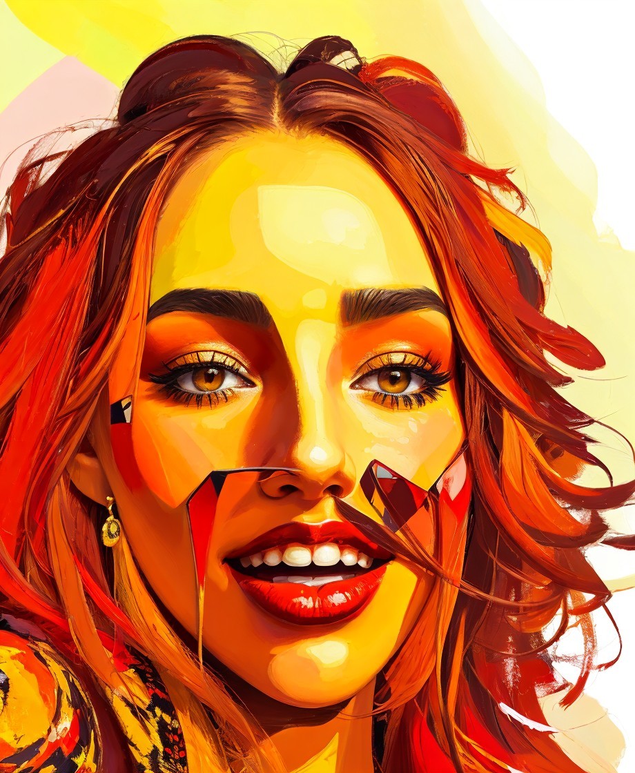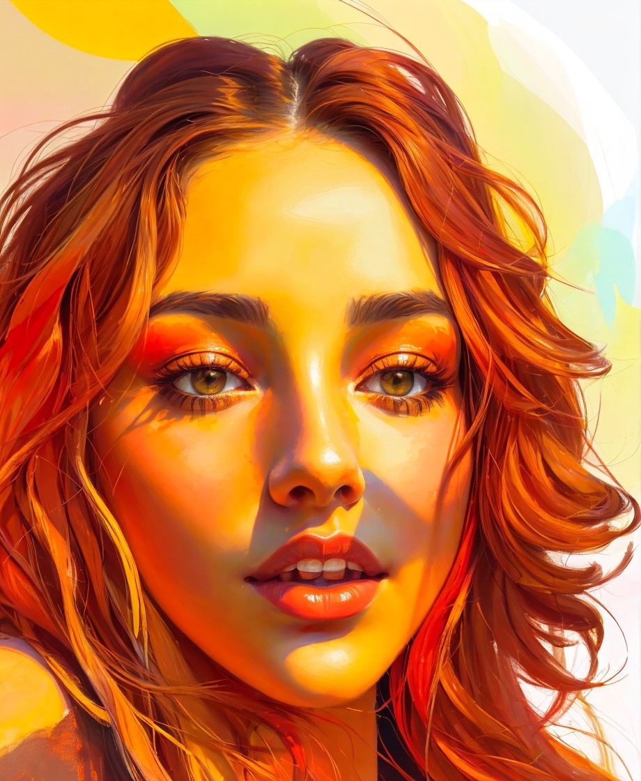Beautiful Portraiture, female face, anthotype printing, triadic color scheme red brown orange,semi-abstract Impressionism, curly hair, delicate soft sunlight, soothing pastel colors, fine brushwork, gracefully, calm, saturated colors 1.5, stylized illustration, thick raised impasto, geometrical, gothical, abstract, brushstroke fields, flamboyant, joyful, wavery texture, occult, grain, blurry aura, soft edges, delicate coloring 1.9, sketch art 1.7, 3d effects 1.8, shadow mapping 1.3, dynamic lighting 1.7, colorful reflections, vibrant colors, lineage art, stylized illustration, fine detailed strokes, octane render illustration, tints of action painting, bold strokes, mezzotinto 1.9, brushed textures, stylized illustration 1.5, anisotropic filtering 1.7, raytraced shadows 1.8, sublime, eldritch, fantasy movie still, symmetric, fauvistic, Splashy, rushing, caught in motion, dynamic lighting from top to centre, diffused lighting, delicate coloring 1.9, bokeh effects, stylized illustration