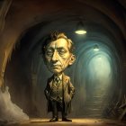 Caricature of a Man in Formal Attire in a Tunnel