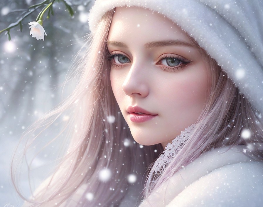 Prompt: deep night, the softness of everything that's peace, closeup of a purple snowdrop shyly appearing from snow, watercolor style of Yelena Yushina and Kaoru Yamada, bells, windy luminous, pale lighting, dreamy and magical, highly detailed, very soft colors, soft edges, mist. realistic, blossoming and snow