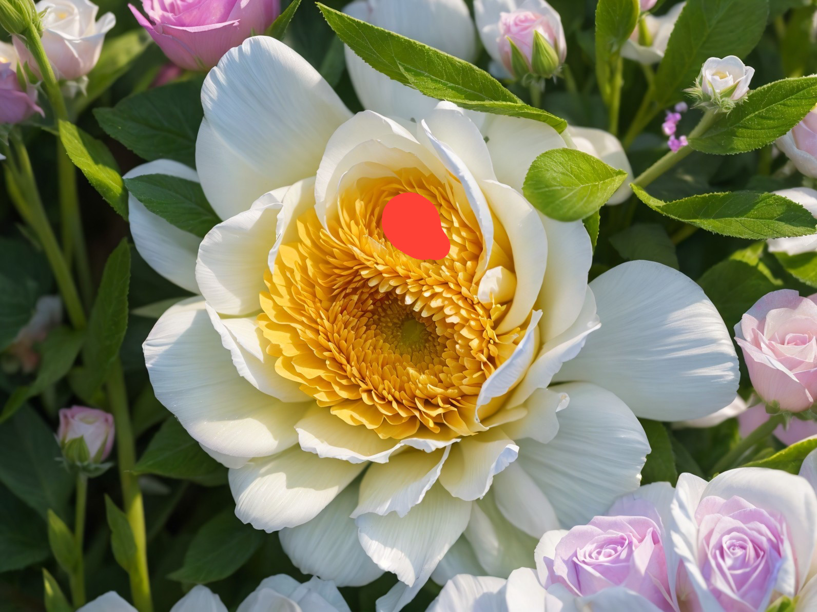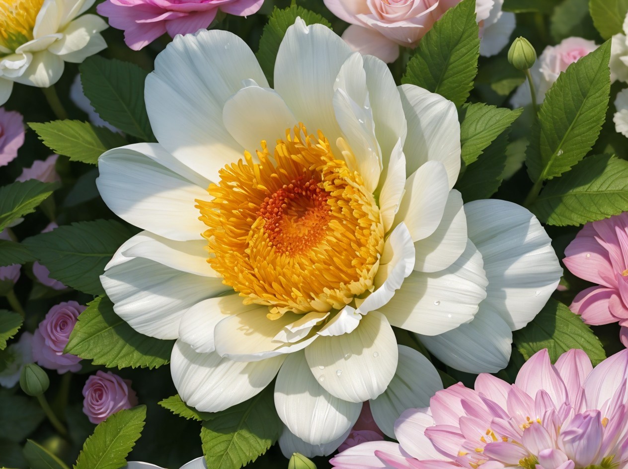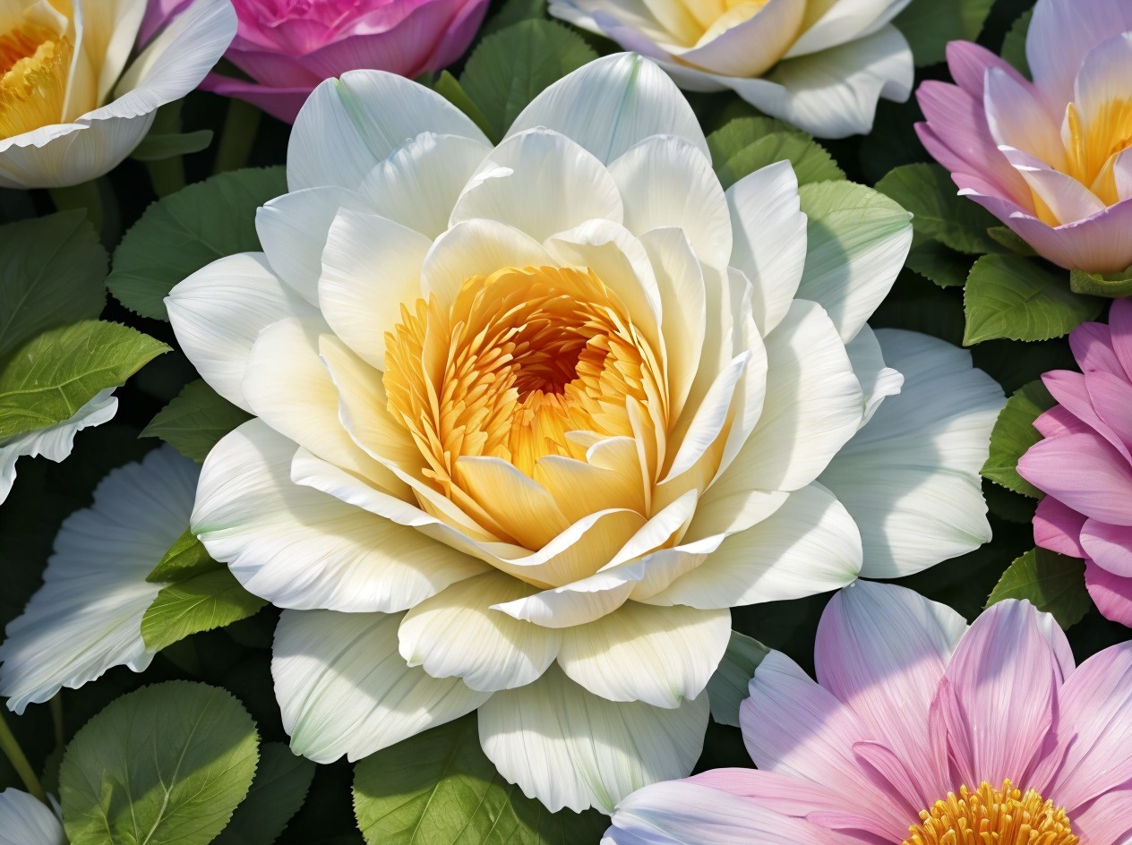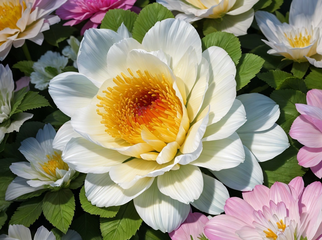 + Prompt:One crystal drop of water rolls down from the flower. Fluffy stem. Nikon D850, highly detailed digital painting, extremely detailed 8K fantasy image, super realistic super detailed 4K 3D crisp quality. No watermark.