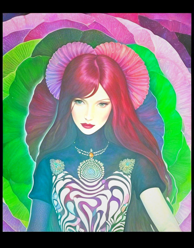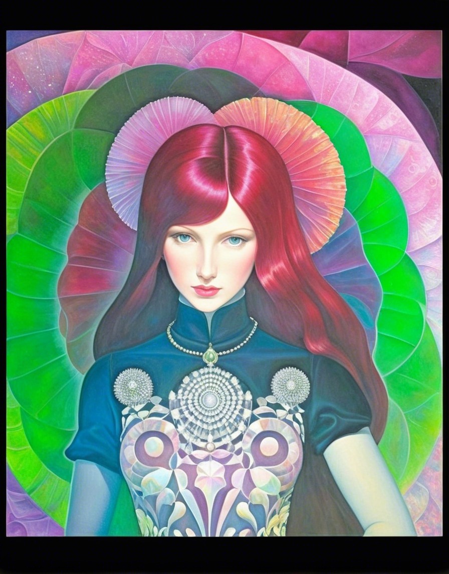 Prompt: Vivid wet-on-wet masterpiece, intricate linework patchwork merging with tessellated plasticity, fractal patterns interwoven, Baroque influences evident, Ernst Haeckel's color palette, mandelbrot aesthetics shining through, symmetrical composition, luminous hues, Fibonacci patterns adding depth, jewel colors meticulously detailed, oil painting on black canvas, American Gothic fusion, cubistic fractalization at its peak, ink splashes enhancing the surrealism, kinky elements subtly integrated, plasma flares for added drama, 64K resolution for utmost clarity, precise Gelsculpt technique employed, novelty architecture elements peeking through, High Octane Render for a striking finish, anatomically correct features highlighted, UHD and HDR for immersive viewing, realistic rendering with a spiritual twist, stacked lines creating a unique visual impact, Marvel Comics-inspired dynamics, heartpunk essence evident, sophisticated and dynamic pose captured, pastel colors transitioning into a misty purple void, crisp quality enhancing the detail, Unreal Engine for a touch of magic, psychosomatic undertones enriching the composition, cinematic flair in the arrangement, surrealism blended with crisp realism, AIVision model for precision, aquarell extrusion technique adding depth, alcohol ink for a touch of fluidity, intricate 4K 3D detail bringing the artwork to life.slighly exaggerated, sculpted features. Embrace a psychedelic color palette with muted tones, merged seamlessly with storybook illustration art. The portrait should exude a plasticity of 1.3, cel-shaded akin to Henri de Toulouse-Lautrec's style, and acrylic painting techniques. Infuse the artwork with a touch of fantasy superrealism and a hint of hyperrealism. Craft the enchantress with a graceful demeanor, surrounded by opalescent linework and shimmering, translucent effects. Utilize a darkened stylized portrait backdrop with a patterned, trippy overlay. Implement squiggly line-