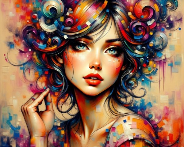 Mysterious Woman in Colorful Gown in Snowy Forest
