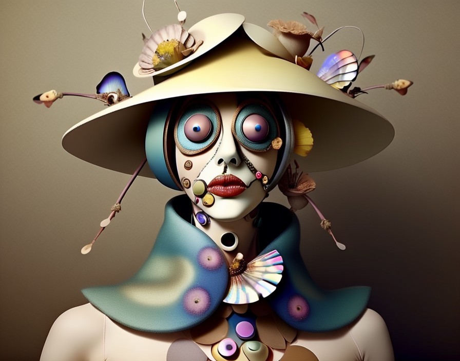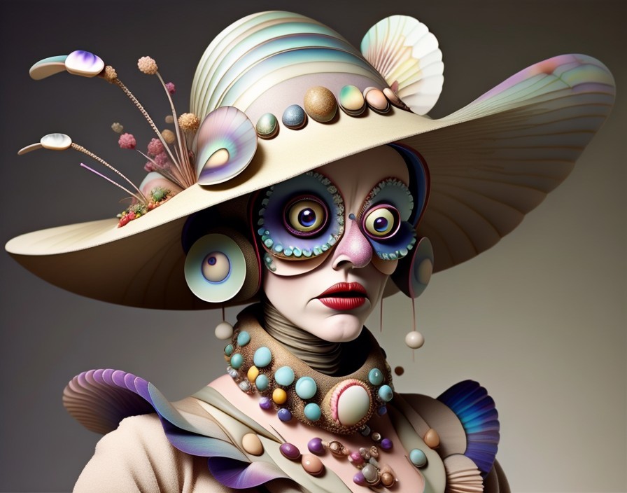 Digital Portrait of a Stylized Figure with Hat and Jewelry