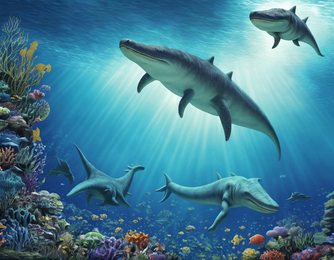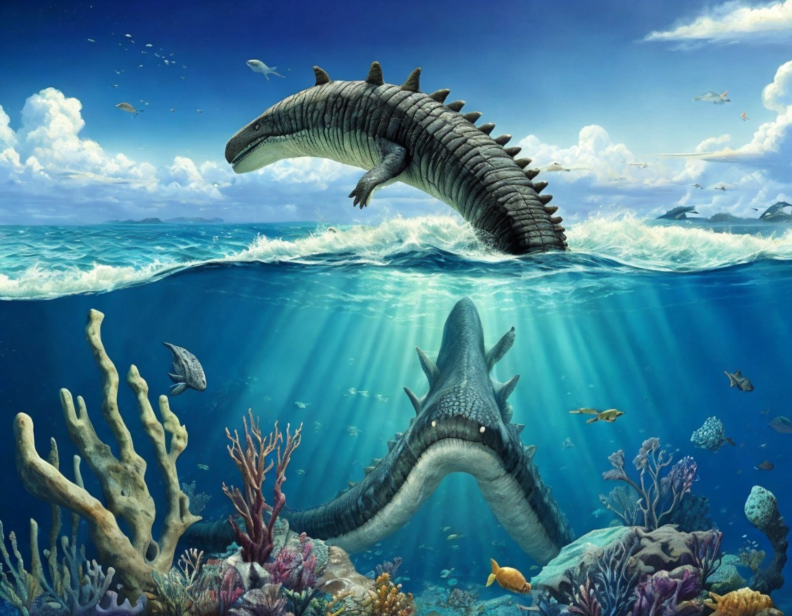 The mosasaurus does not have that fin that seems to come out of one side: I'll see if I can edit it to remove it, it's quite a challenge for me!