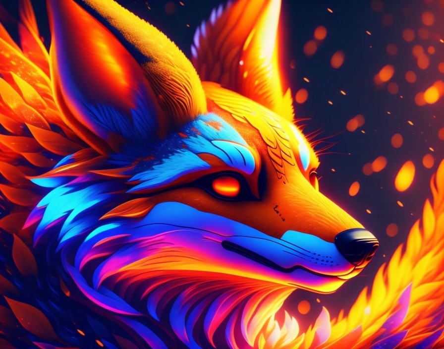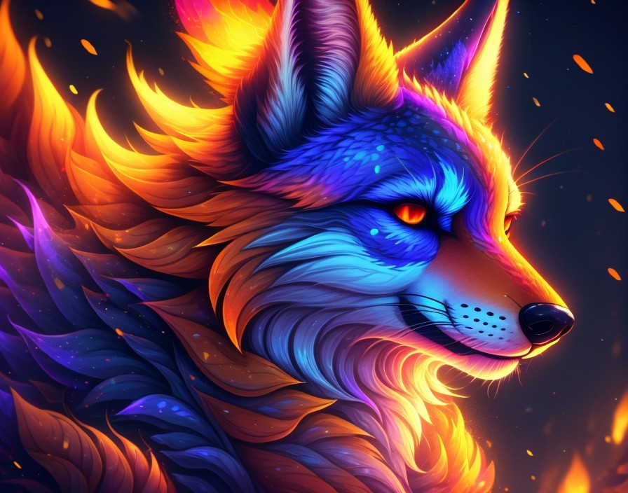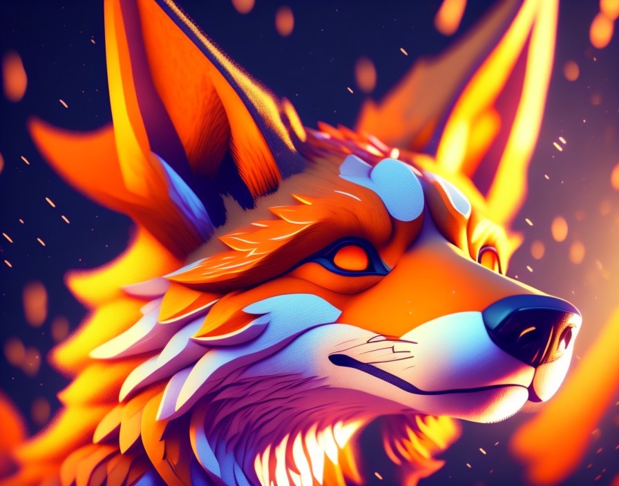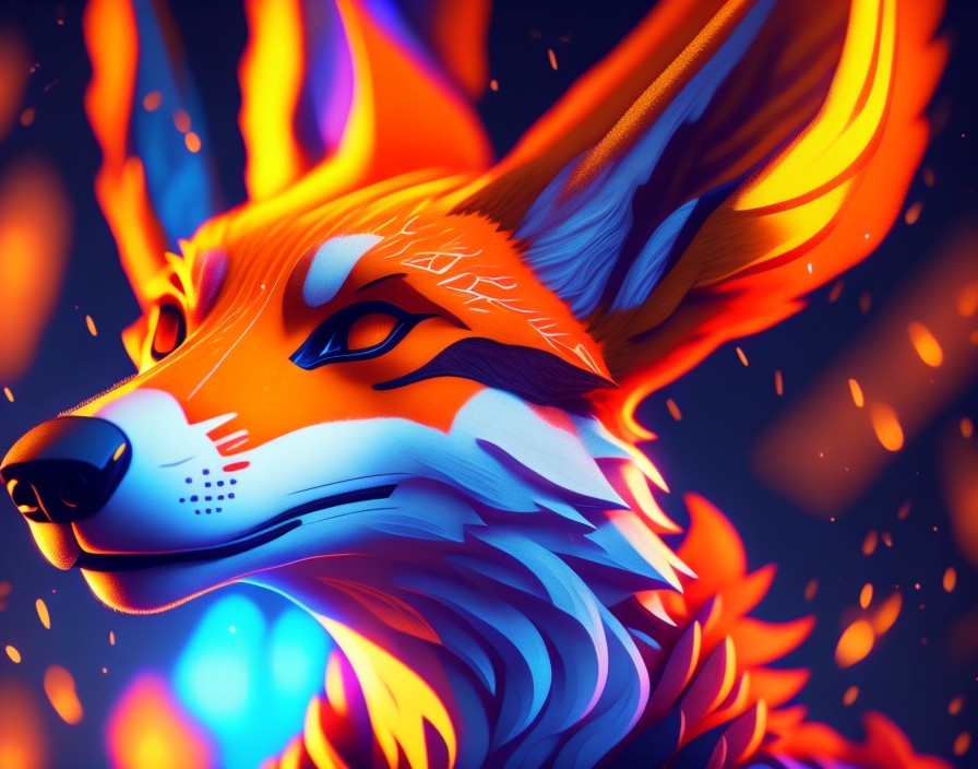 Vibrant Digital Artwork of a Fox with Luminous Eyes