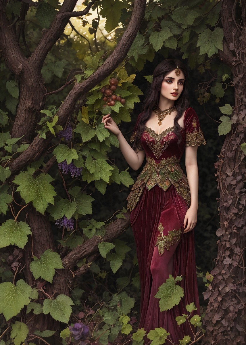 Ampeloi is another female dryad that is mentioned in Greek mythology and lives on grapevines exclusively. 3rd century Persian miniature art, violet, brown green, Ruby red, Velvet Black, Shabby, Dull Gold, Amber Gray, Golden Ratio, Surreal Fantasy, Elegant, High Definition Ultra Fine 3D Line, Zenangle Style, Watercolor Patchwork , Arthur Rackham Style, Paul Kidby, , Jacek yerka, Extremely Detailed, Intricate, Thoughtful, HDR, Fractal, Beautiful, Award Winning, Fantasy Look, Fantasy, Crisp Quality