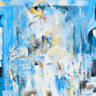 A serene portrait of a young woman in a traditional kimono, adorned with flowers in her hair, set against a calming blue background, her expression is gentle and captivating.