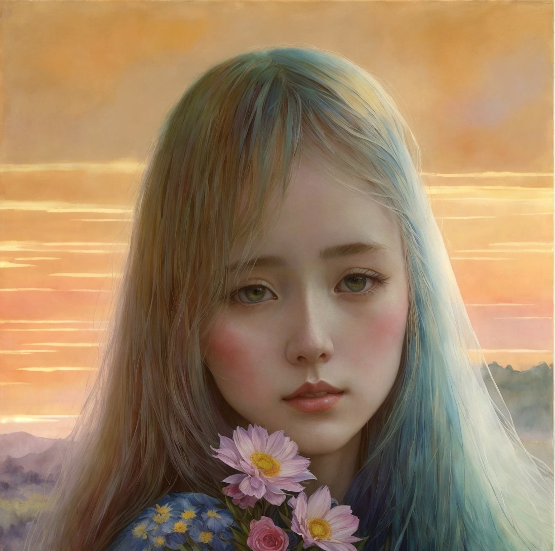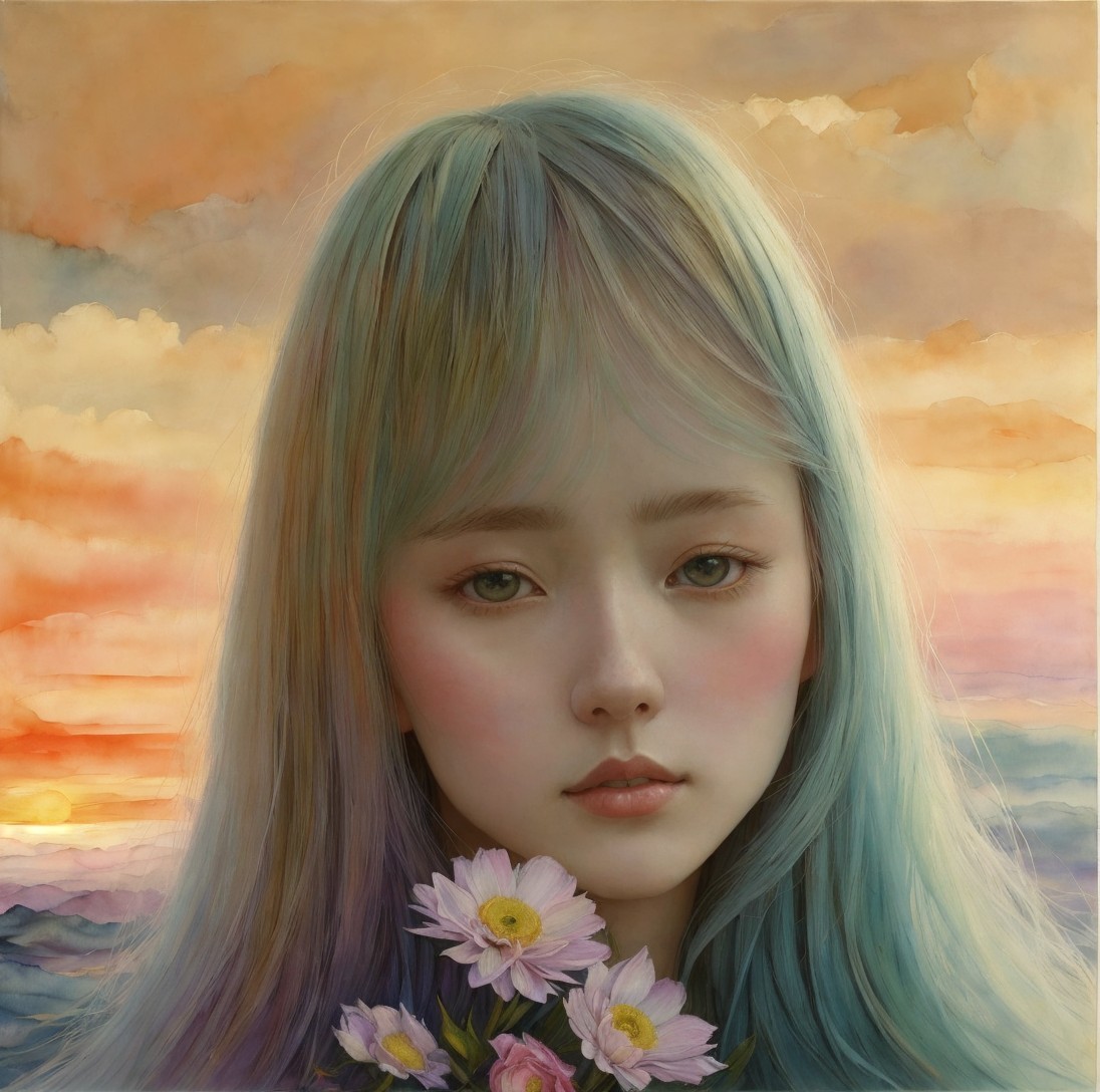 A very pretty dreamy girl art by Lin Fengmian, Anna dittmann, Justin Gaffrey, John Lowrie Morrison, Patty Maher, John Ruskin, Chris Friel, van Gogh, Valerie Hegarty, endre penovac. 3d, soft colors watercolors and ink, beautiful, fantastic view, extremely detailed, intricate, best quality, highest definition, rich colours.