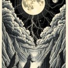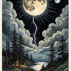Nighttime Landscape with Moonlit Lake and Stormy Sky