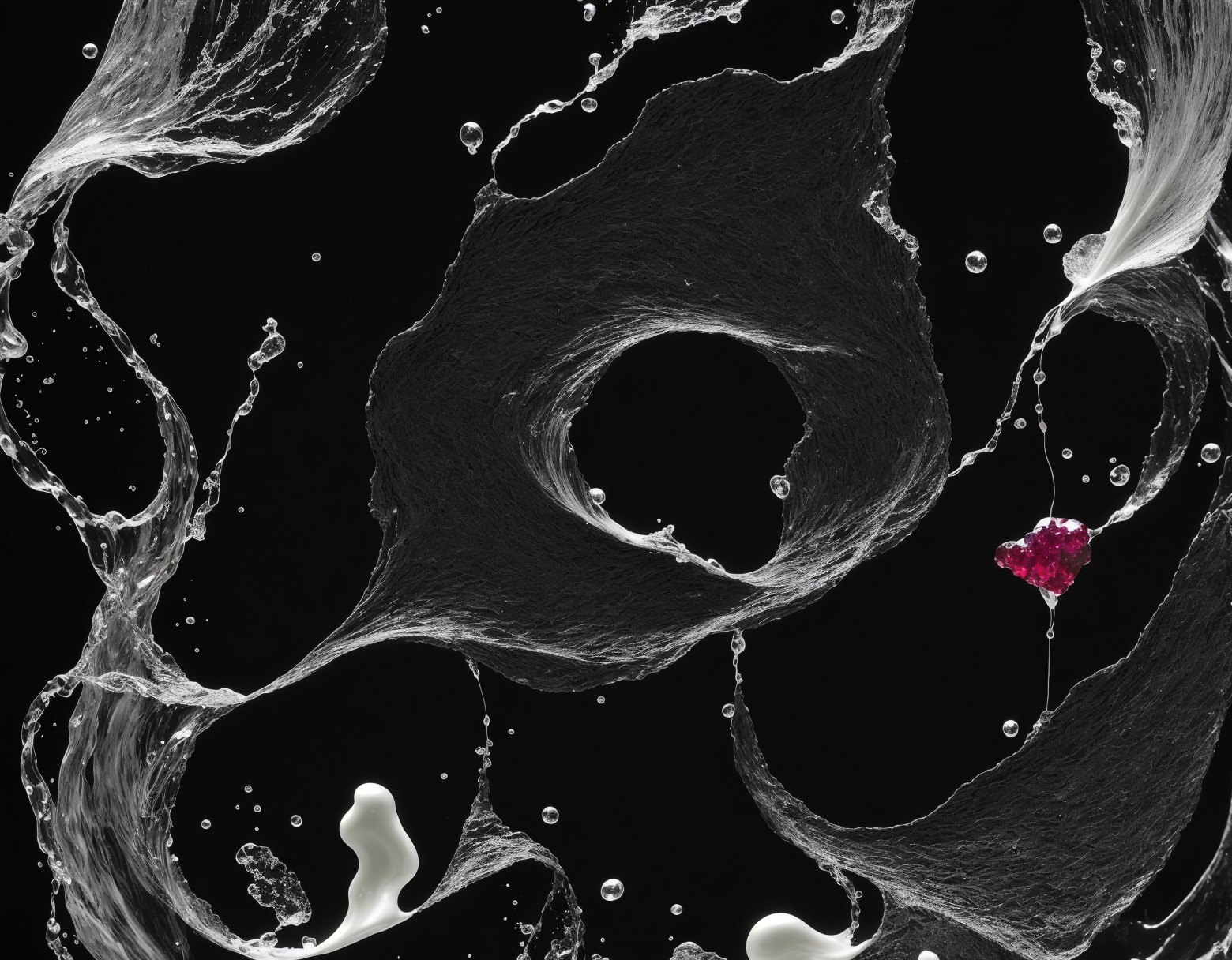 Prompt: "[your soul dangling in the wind] [thin paper wings] [exobiology and artifacts of unknown purpose] [background of crushed charcoal and rubies] [unique artistic perspective] [perfect fluid hydrodynamics] [milk and radium splash art] [soaring devotion to a higher concept than humankind itself]"