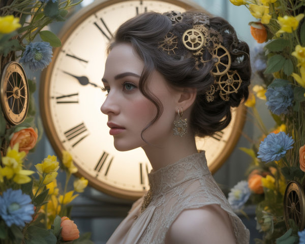 A young woman with curly hair and a wide-brimmed hat gazes thoughtfully at the viewer, while a vintage ship sails in the background against a backdrop of aged text.