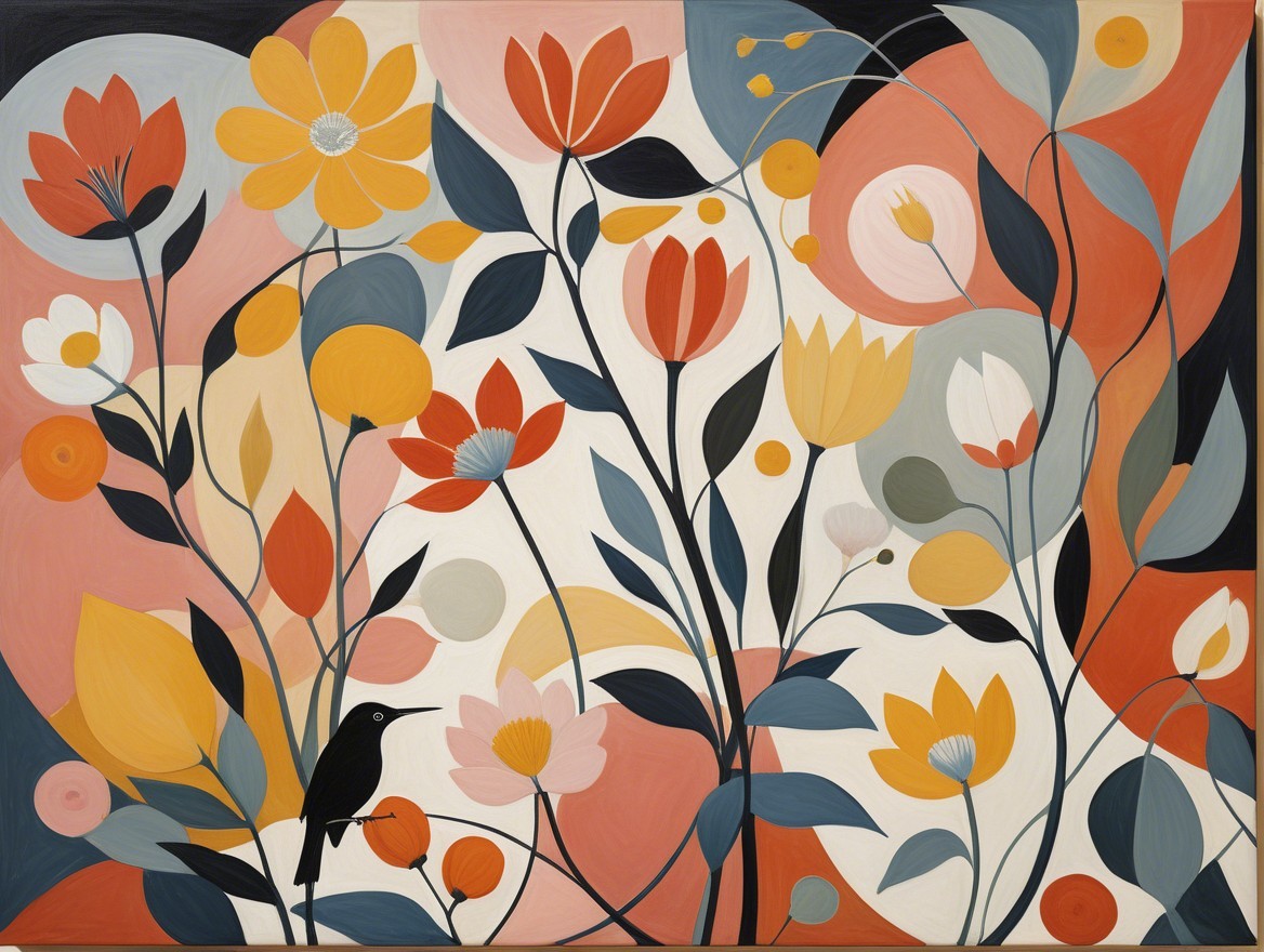 Vibrant Abstract Floral Design with Birds and Colors