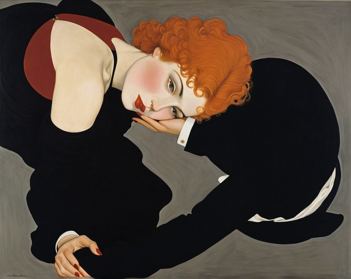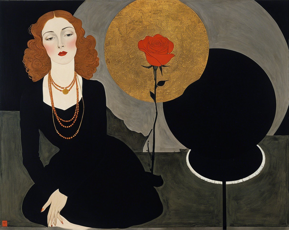 The artwork of Walter Martin Baumhofer and rené gruau is characterized by its whimsical, beautiful, poignant, and touching nature. The color palette often includes shades of rose, gold, rust, burgundy, and black. Artists like Annigoni, Egon Schiele, Milo Manara, Botticelli, Catrin Welz-Stein, Jean Metzinger, and Klimt create soft watercolor pieces with extra water, showcasing an Art Deco style. The attention to detail is evident in the perfect eyes, perfect hands, and highly detailed faces. Complementary colors are used to enhance the overall effect. Watercolor and ink splatters add a dynamic element to the artwork, often set against a dark blue background. Artists like greg rutkowski, loish, rhads, beeple, makoto shinkai, lois van baarle, ilya kuvshinov, rossdraws, tom bagshaw, and alphonse mucha employ techniques like global illumination to create detailed and intricate environments. Other notable artists in this style include Arthur Rackham, Grant Wood, Paul Klee, Lisa Frank, Van Gogh Illustration By Marguerite Delorme, Chokha, Marguerite Zorach, Edward Gorey, and junji ito. The use of gold and silver leaf colors adds a luxurious touch to the artwork