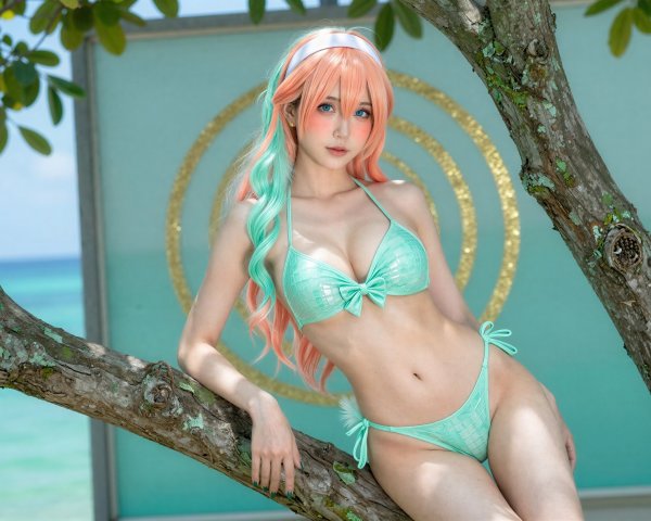 An anime-style girl with purple hair and a traditional dress stands among a bustling, colorful street scene with cherry blossoms and lanterns.