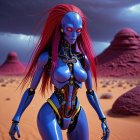 A futuristic robot with a sleek metallic body wears a Santa hat and sunglasses. It sits on a bright yellow couch in a vibrant forest setting, blending festive flair with a sci-fi vibe.