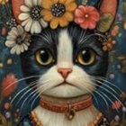 Prompt: Please draw a colorful illustration of a brown tabby cat reading a book. The cat is lying under a colourful patchwork quilt. the background is dark and full of stars. ” black and gold and green background in graphic and watercolor vintage style. very beautiful colors. bold, energetic, explosive contrast of brilliant colors. Tons of twinkling stars and a silver crescent moon in the background.