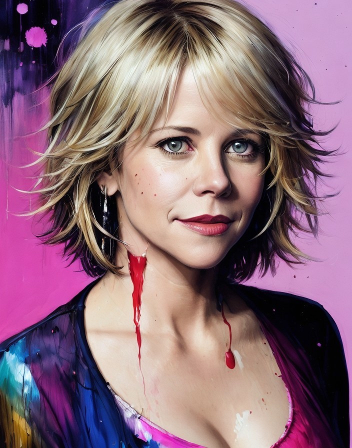 Colorful Stylized Portrait of Woman with Short Blonde Hair and Red Lipstick
