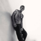 The image depicts a muscular, winged figure standing on a rocky base, holding a book. He has a laurel wreath and a contemplative expression, set against a dramatic, cloudy background.