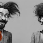 Prompt: "The Smiling Corpse ~ Paul Klee James Jean Anton Pieck Erik Johansson Charles Addams A cartoon resident is a optimist, skinny, disheveled, shaggy, old man with crazy hair and legs in a suit, crazy hair counting on happiness. Caricature. Like a child's drawing. Minimalism, simplicity, charcoal drawing, whirlwind of colors, orange soot, sketching, bleached background, grunge, alcohol ink, play of light and shadow, quick sketch, unusual horror, watercolor, dark art"