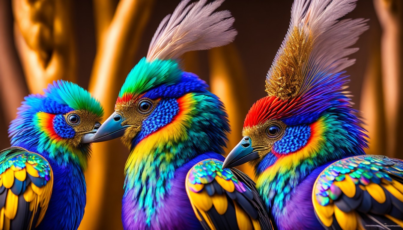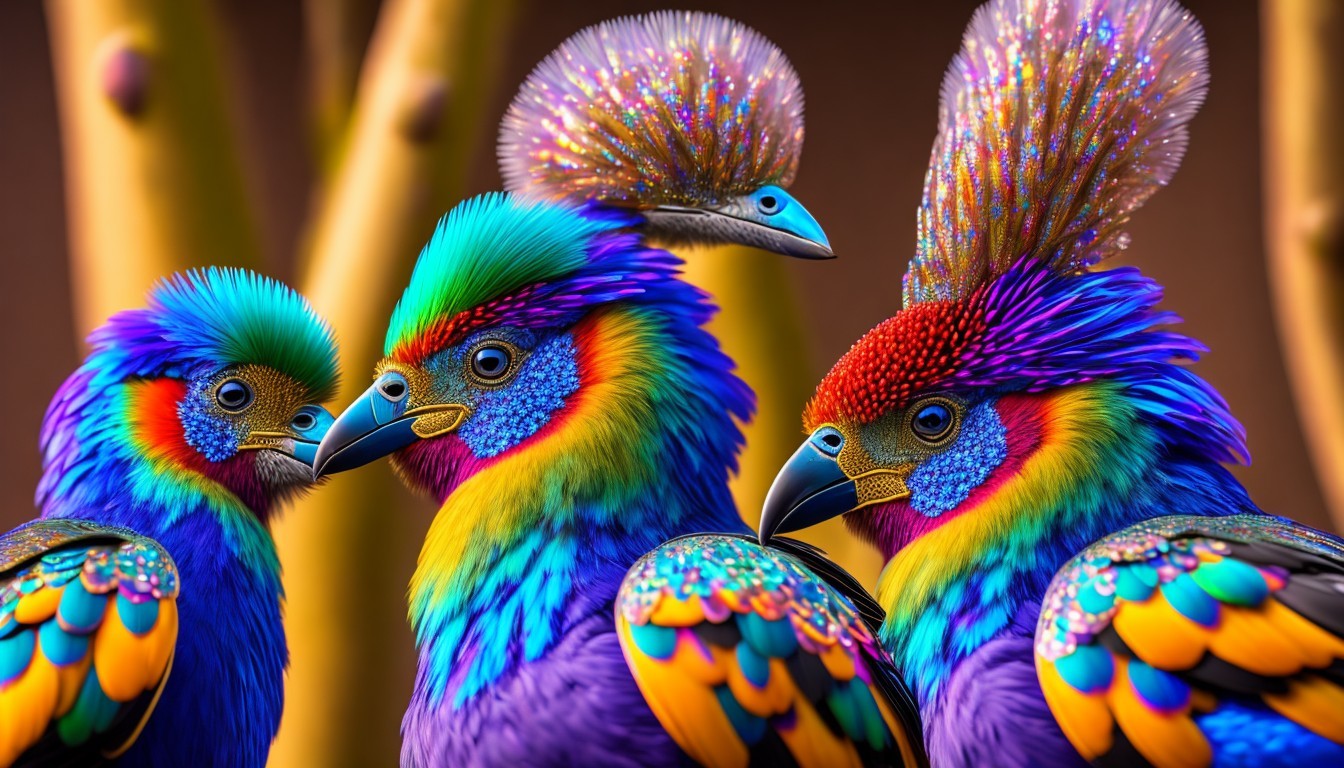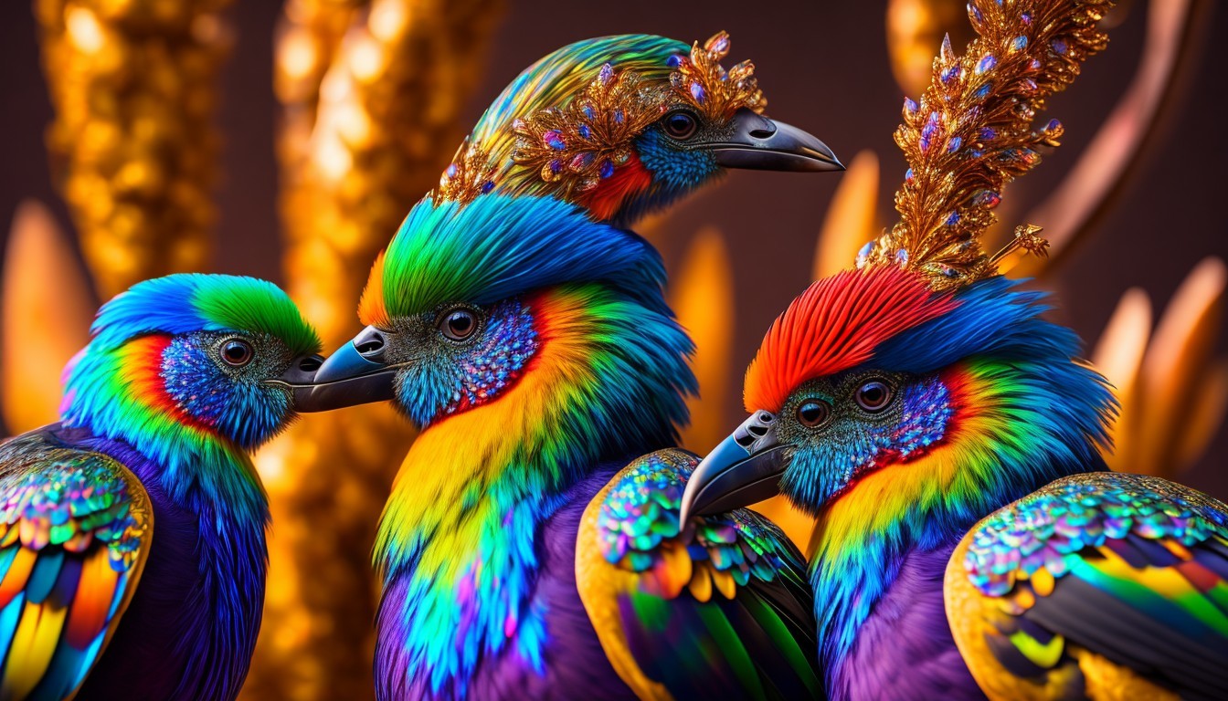 The strangest and most fabulous and spectacular bird species ever seen, all alone, with a gorgeous muticolored crest, rendered in magnificent detail with rich shinty iridescent, opalescent and labradorescent textures and all over, in sharp focus and insanely high defintion, with enhanced shiny reflective iridescence, opalescence and labradorescence, and with a matte neutral background.