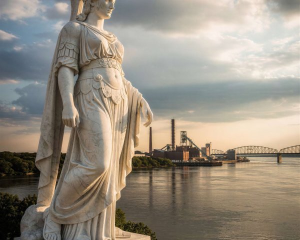 A woman in an ornate Victorian dress stands beside a complex brass clock in an elegant, vintage-styled room.