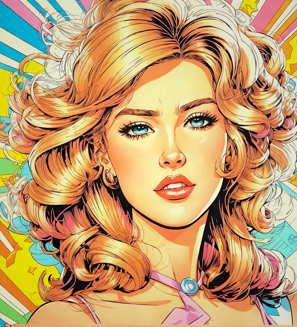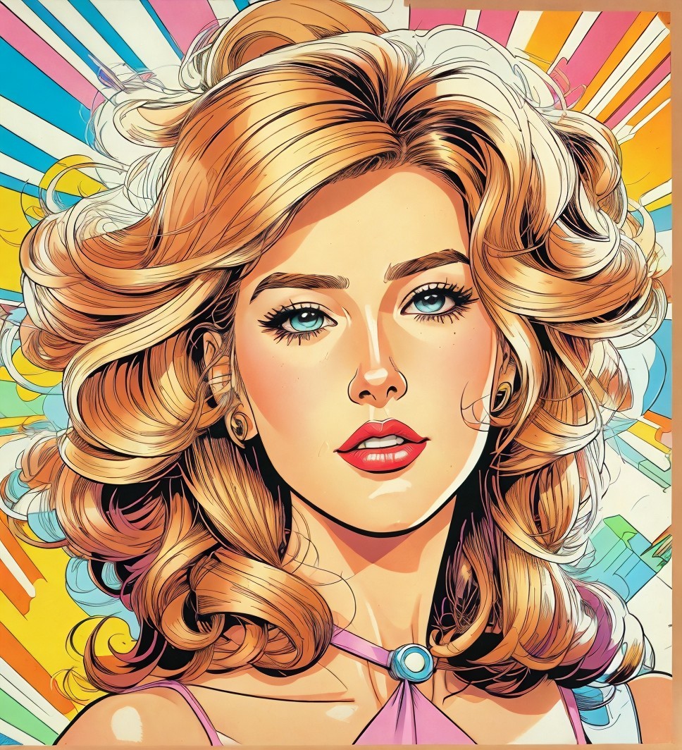 Marvel comic book art, 1980s animated female character, headshot, stacked-up perspective, stylized lineage illustration, varnish, colored line drawing, style of comic book art merged with lineage illustration, tiny lines and pastel colors, manga style heroine in style of Georgia O'Keefe and Overton Loyd, auburn curly hairstyle, eroticism, perfect handsface, hysterical, muted tones, symmetrical face, Subdued palette ,Symmetrical eyes, somber, desaturated colors, Soft dappled lighting.synthetic, eerie, american gothic 1.3, tetradic color scheme beige teal ochre auburn, ambient occlusion 1.7, octane render illustration, luminosity 1.3, radiance, black frilly blouse with crackles, maximalism, mechanoid details, abstract brushstroke fields, grunge, squiggly lines, abstract, maximalism, radiance, cottagegore 1.7, octane render illustration, anisotropic filtering 1.7, dynamic lighting 1.7, colored line drawing, style is reminiscent of comic book art, raytraced shadows, ethereal, abstract, coherent, fauvistic, synthetic, gradient inking colors, golden ratio, colorful reflections in style of Harrison Fisher, crayon art, colorful crayon on textured paper, intricate details, elegant intricate, crisp quality, anatomically correct, Watercolour and ink,