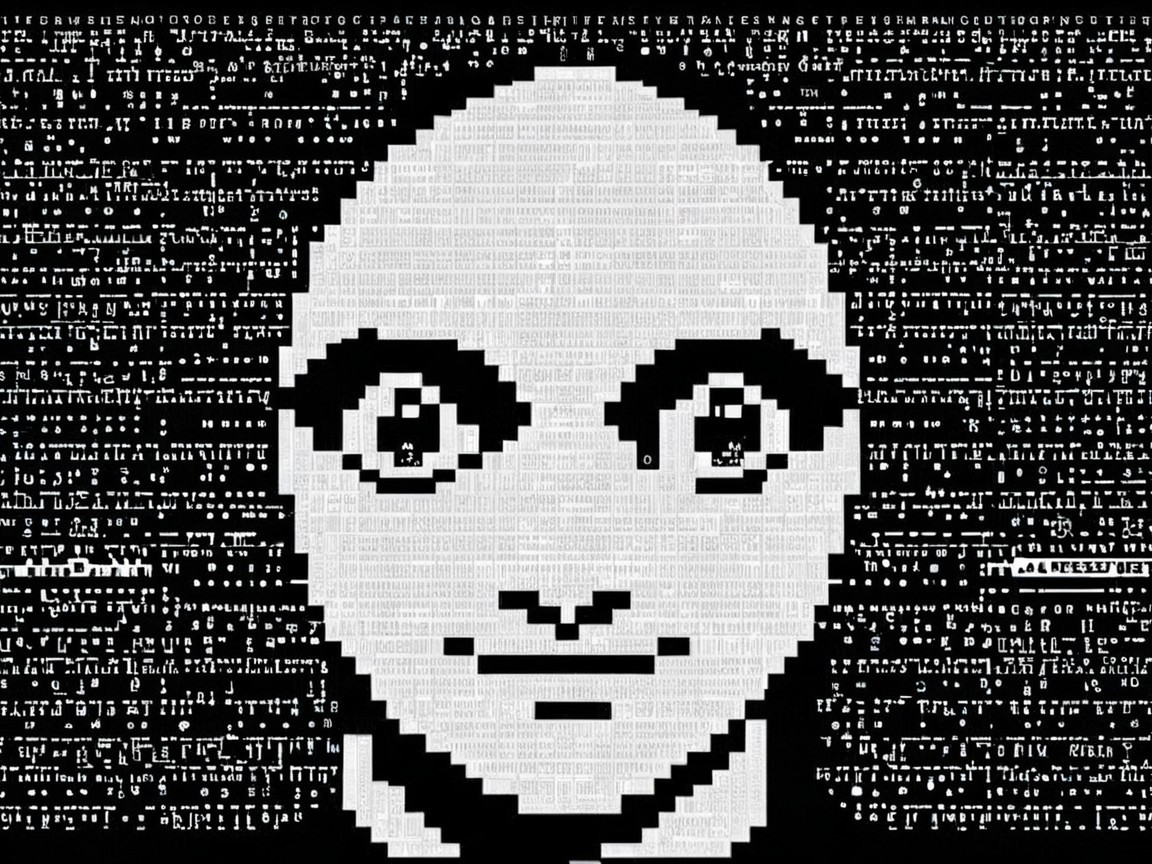 Monochrome Portrait of a Young Woman with Pixel Art Background