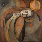 A serene fairy with flowing red hair rests peacefully, cradling golden fabric. Her delicate wings blend with dark, ethereal hues, while a luminous golden moon glows softly in the night sky.